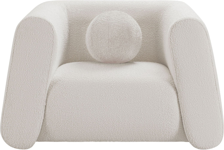 Give your room a new look with the chic Abbington chair in stunning boucle fabric. Embrace the richness of its texture and the boxy, geometrically inspired design that adds a touch of contemporary flair. This chair is not just furniture; it's an aesthetic experience. Complete with an included ball pillow, the Abbington chair is a sophisticated choice, promising both comfort and style for your living space. Redefine elegance with this eye-catching addition to your home from an unparalleled collection that lets you mix and match to suit your style preferences.