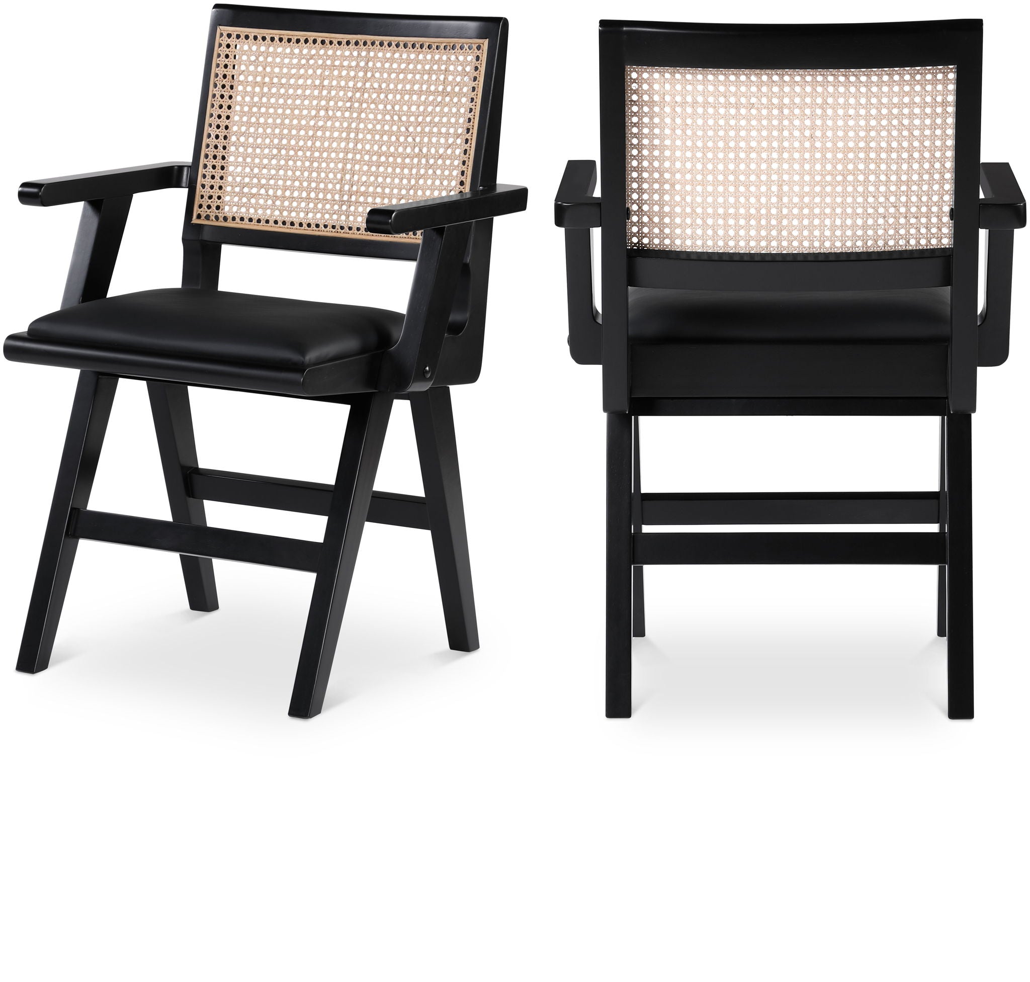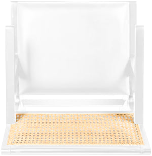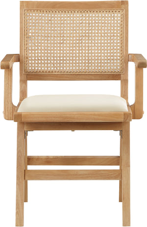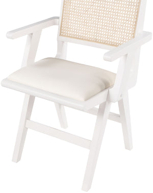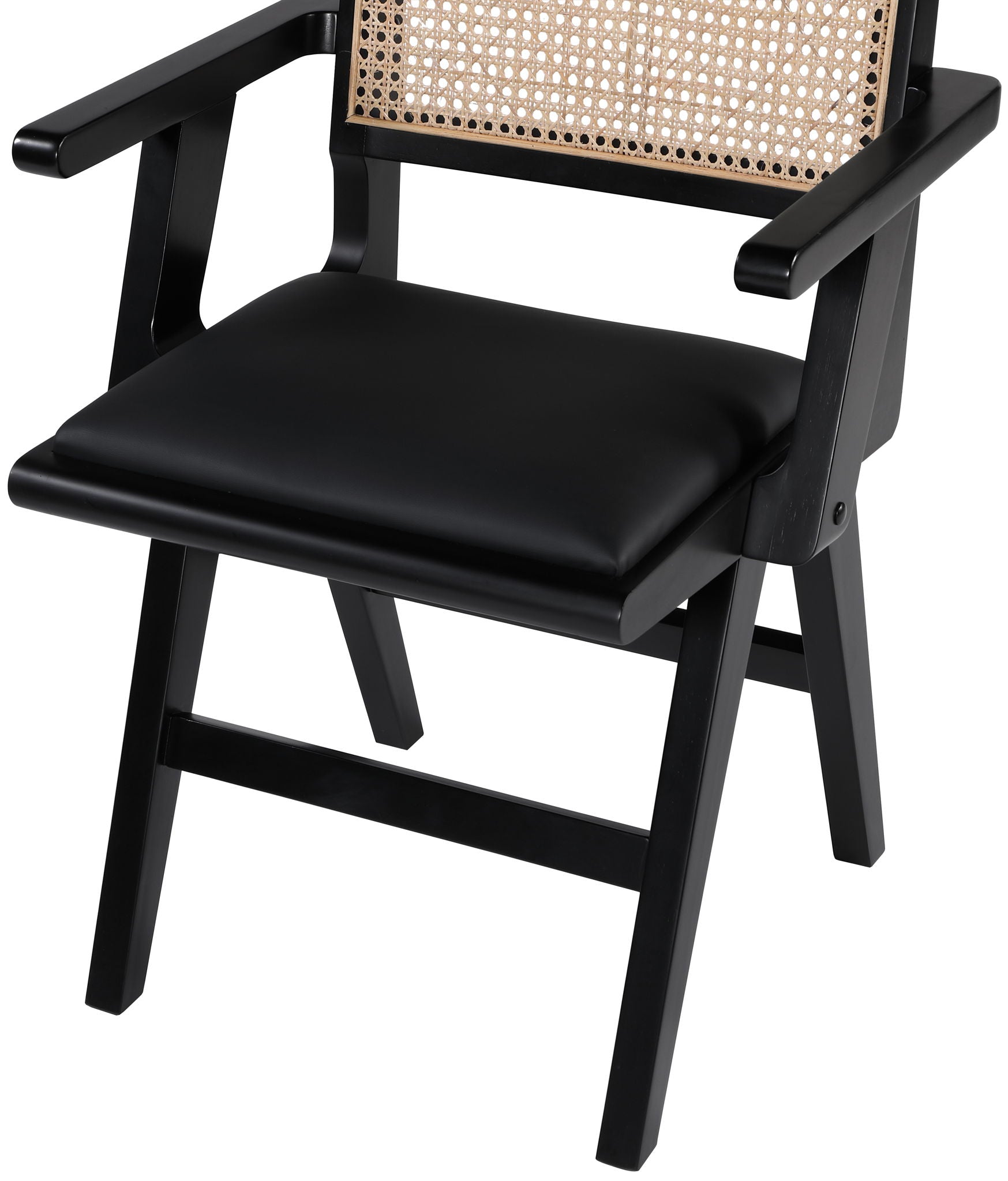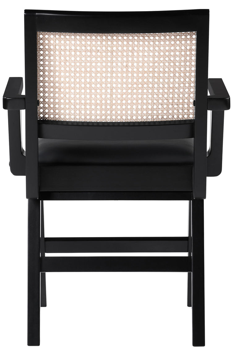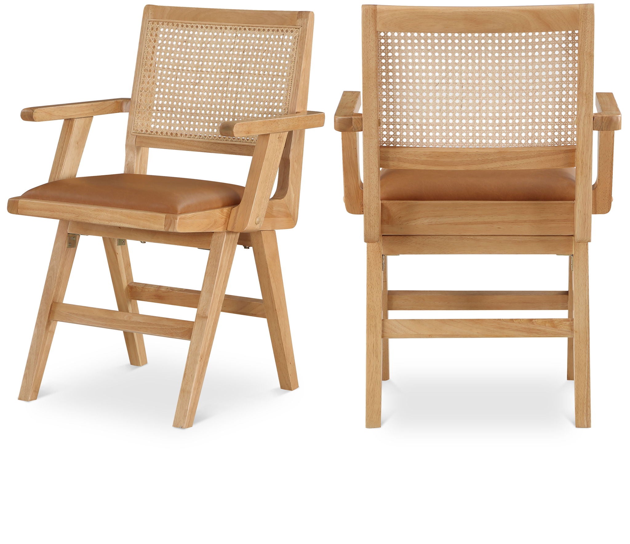 Sit back and relax in this armchair from Meridian Furniture's Abby collection. Featuring a frame crafted from solid wood with a natural finish and a vegan leather seat, this chair is both sturdy and durable so it will last you for years to come. A natural cane backrest seamlessly blends with the chair's natural-finished frame, adding a sense of warmth and charm that ensures it will stand out among all your furniture.