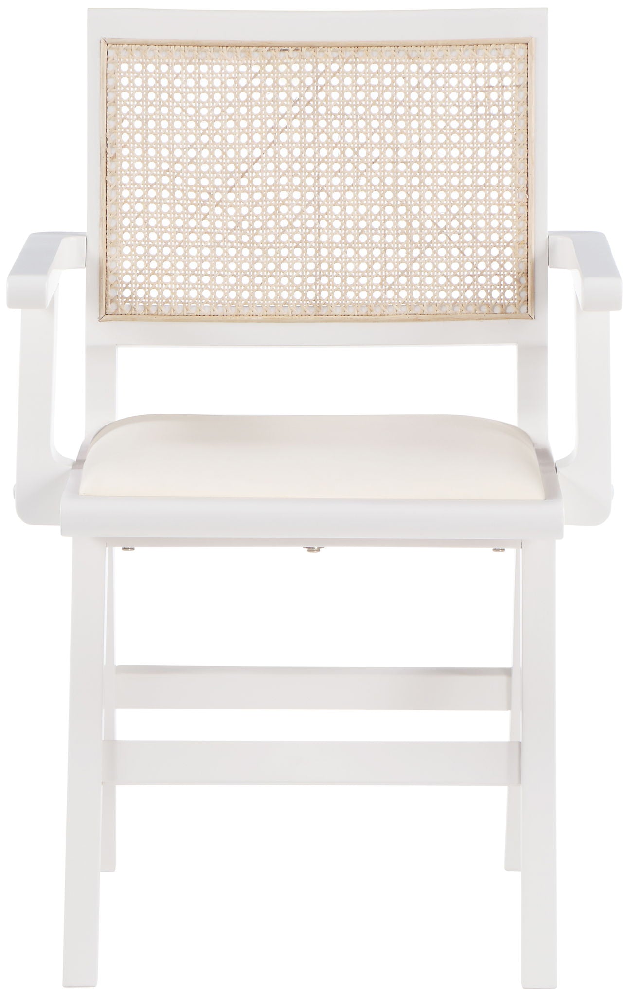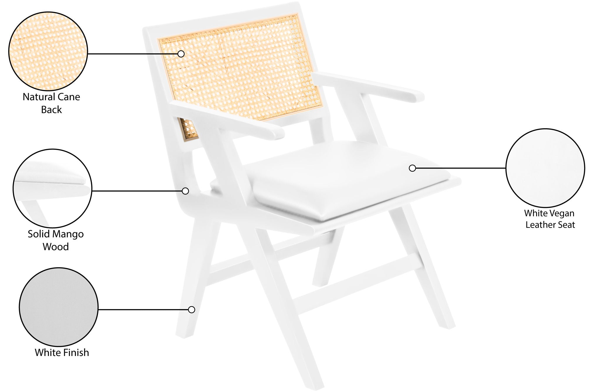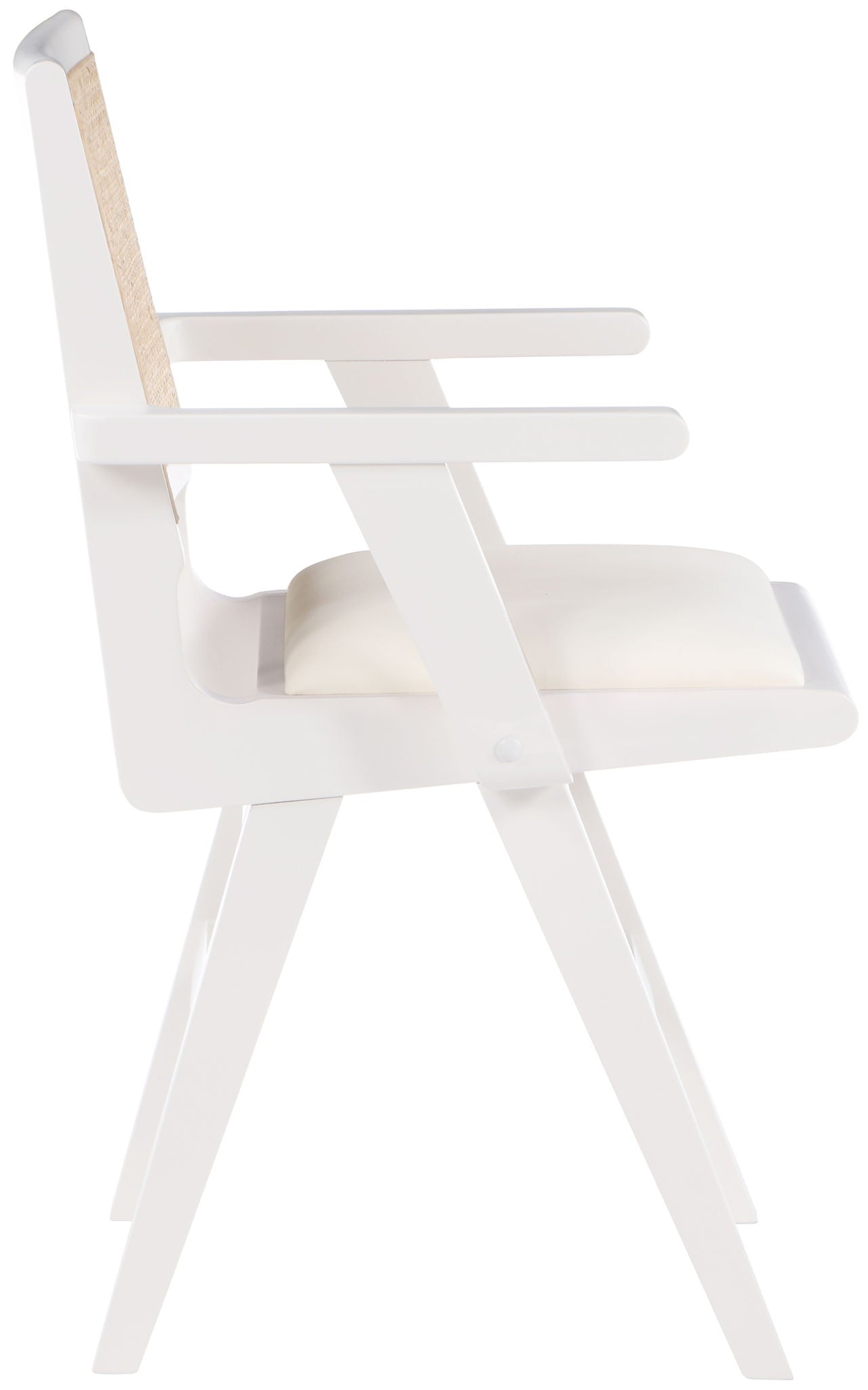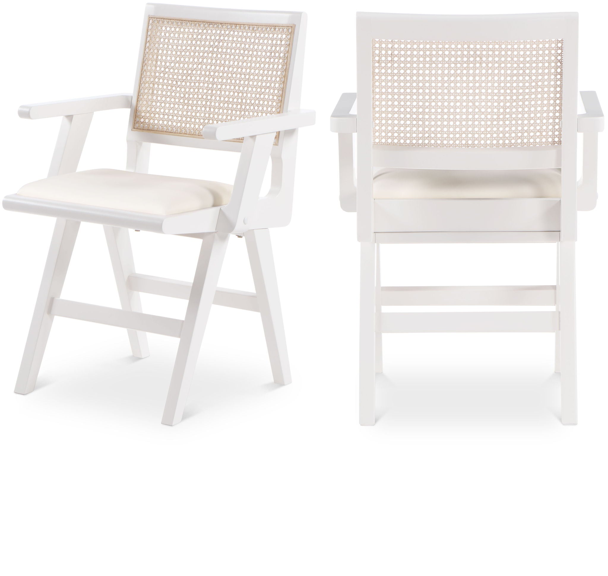 Sit back and relax in this armchair from Meridian Furniture's Abby collection. Featuring a frame crafted from solid wood with a natural finish and a vegan leather seat, this chair is both sturdy and durable so it will last you for years to come. A natural cane backrest seamlessly blends with the chair's natural-finished frame, adding a sense of warmth and charm that ensures it will stand out among all your furniture.