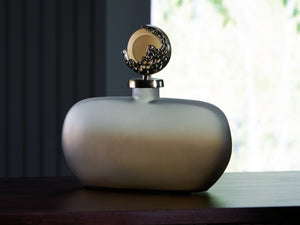 Bring stately elegance home with this jar. Made with frosted glass in a luxurious taupe finish, its ombre effect adds visual intrigue to a shelf or mantle. A textured goldtone topper provides an added dose of traditional flair.