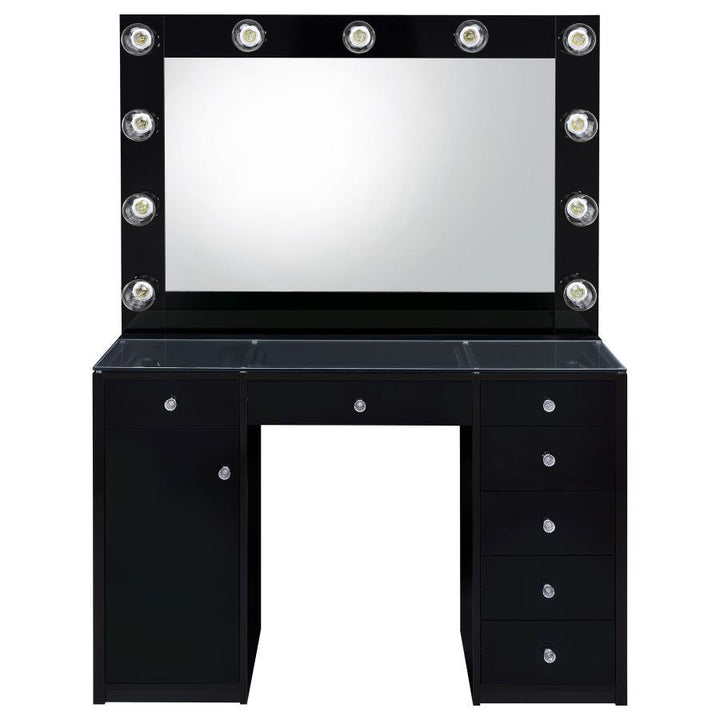 Acena - 7-Drawer Vanity Set With Lighting - Black High Gloss