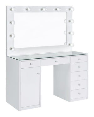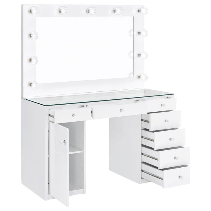 Acena - 7-Drawer Vanity Set With Lighting - White High Gloss