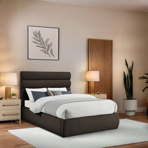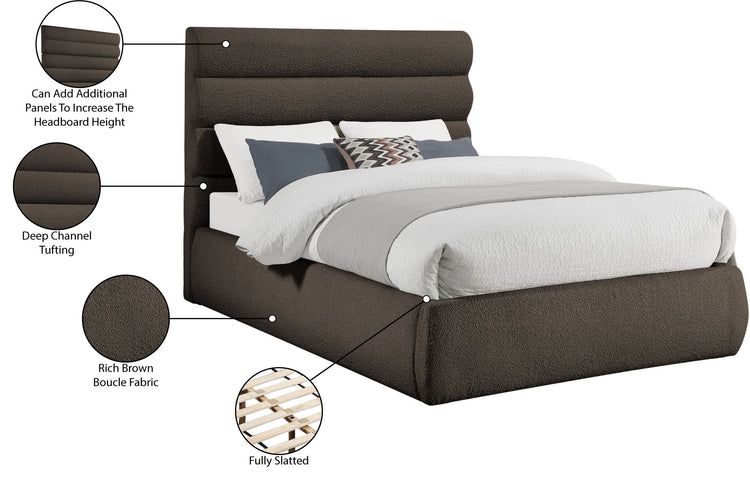 Adam - Boucle Fabric Queen Bed With 52" Headboard - Dark Brown