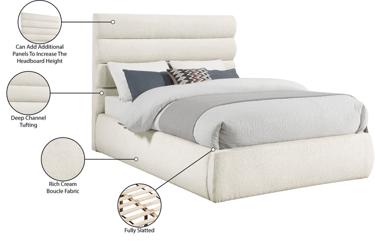 Adam - Boucle Fabric Queen Bed With 52" Headboard - White