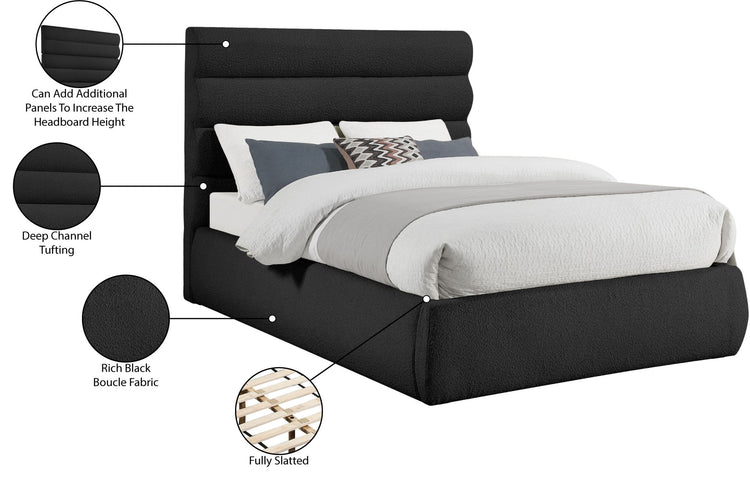 Adam - Boucle Fabric Queen Bed With 52" Headboard - Black