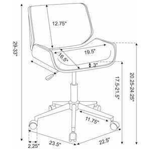 A low profile offers easy elegance and comfortable seating. Reflecting a hint of retro design, this office chair is functional and fashionable. Enjoy supremely comfortable seating on a molded seat with generous upholstery and a curved base. A gently curved seat back is generously sized and makes a great venue for resting. Adjustable seat heights join caster wheels to aid in customizing positions.