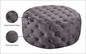 Rest weary legs at day's end atop the welcoming comfort of this Addison velvet ottoman. This Hollywood-inspired ottoman features deep button tufting from top to bottom for a luxe look and is covered in velvety upholstery for added glam. The vibrant color makes a bold statement in your space. This substantially sized ottoman also doubles as an extra seat and is padded thickly for supreme comfort.