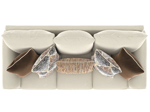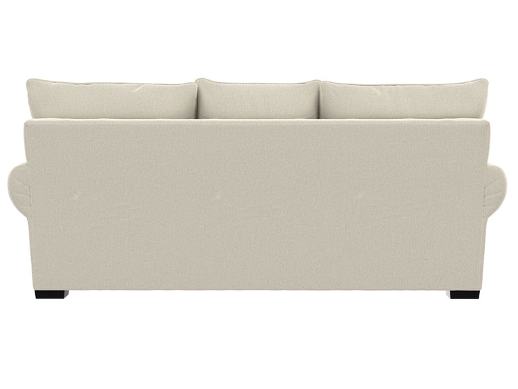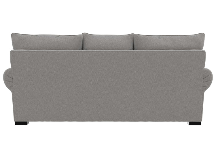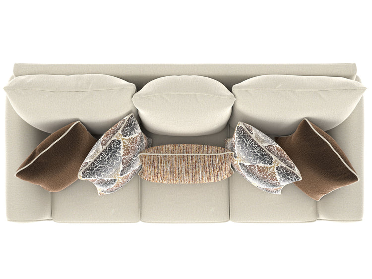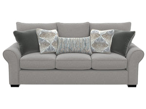 Alden features a transitional sock arm design and wooden pyramid legs. A variety of accent pillows provide additional color and texture.