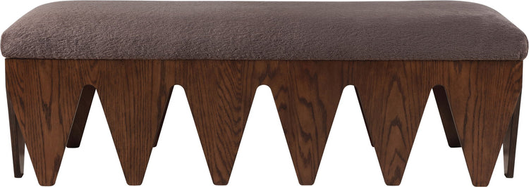 Bold and architectural, the Altair velour fur fabric upholstered bench combines avant-garde design with plush luxury. The seat is covered in soft velour fur fabric, offering an indulgent texture that invites you to sit and relax. Its distinctive rich brown walnut oak veneer wooden base, featuring sharp, angular legs, brings a sculptural, modern touch to any room.