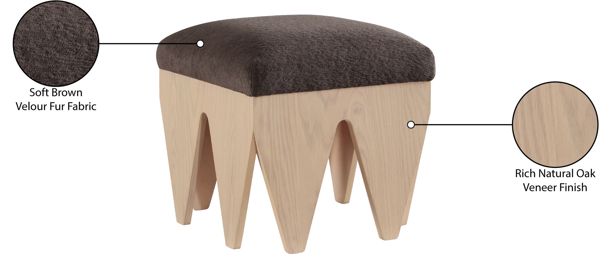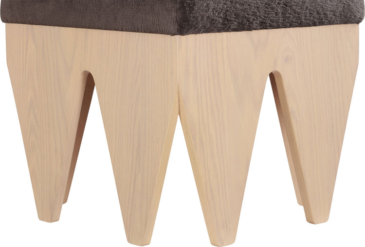 Bold and architectural, the Altair velour fur fabric upholstered bench combines avant-garde design with plush luxury. The seat is covered in soft velour fur fabric, offering an indulgent texture that invites you to sit and relax. Its distinctive rich natural oak veneer wooden base, featuring sharp, angular legs, brings a sculptural, modern touch to any room.