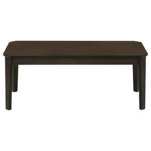 Add a timeless touch to your living room with this three-piece coffee table set. Featuring a coffee table and two side tables, each piece showcases a rich dark brown finish for a classic appeal. The smooth tops with notched corners add charm while providing functionality. Built from rubberwood, engineered wood, and Okume veneer, these tables are durable and stylish. The slim, tapered legs complement the minimalist design, making this occasional table set a perfect choice for compact spaces.