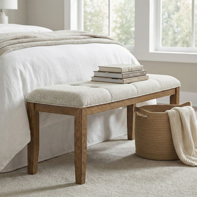 Ananda - Fabric Upholstered Bench - Beige / Brushed Brown