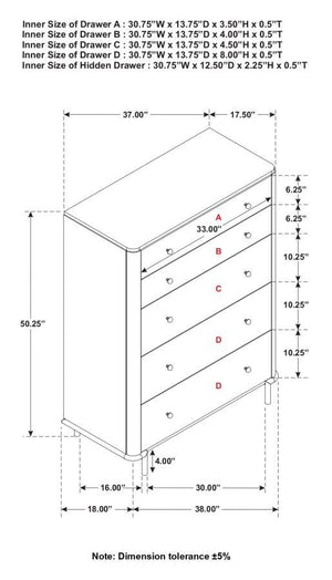 Arini - 5-Drawer Bedroom Chest - Sand Wash