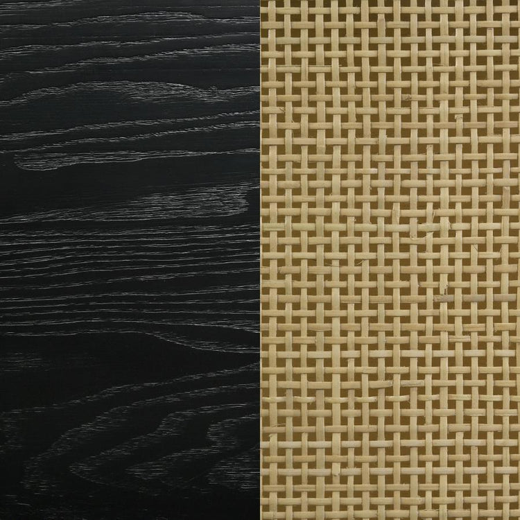 This 65-inch sideboard combines modern sophistication with organic charm and exceptional functionality. Featuring handcrafted woven cane door panels from Indonesia, it adds natural texture to any space. Constructed from solid Asian hardwood and white ash veneer, its refined craftsmanship is enhanced by a 17-step finishing process. Felt-lined drawers with English dovetail construction glide smoothly on 45mm metal ball-bearing tracks, while soft-close Euro-hinged doors and adjustable shelves offer practical storage. Antique brass knobs and legs complete the elegant design.