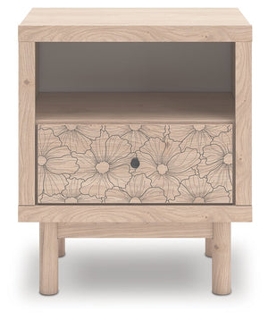 Looking for a nightstand that's both playful and practical for your little one? This piece is just the ticket. Its charming design and light wood finish create a whimsical and inviting atmosphere. A floral-patterned drawer adds a free-spirited vibe and plenty of bedside storage, so there's no excuse for a messy room. And a USB charger located on the back makes this nightstand that much more functional.