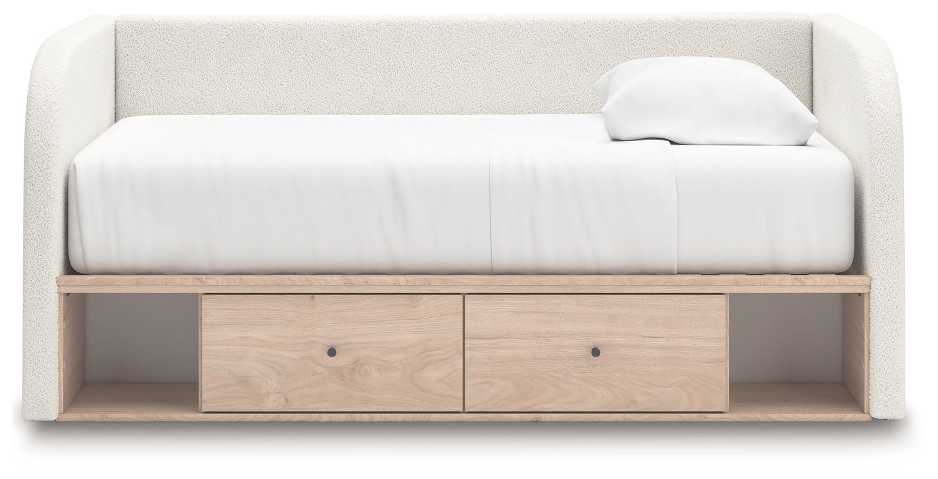 Arloster - Twin Upholstered Day Bed With Storage - Tan / White