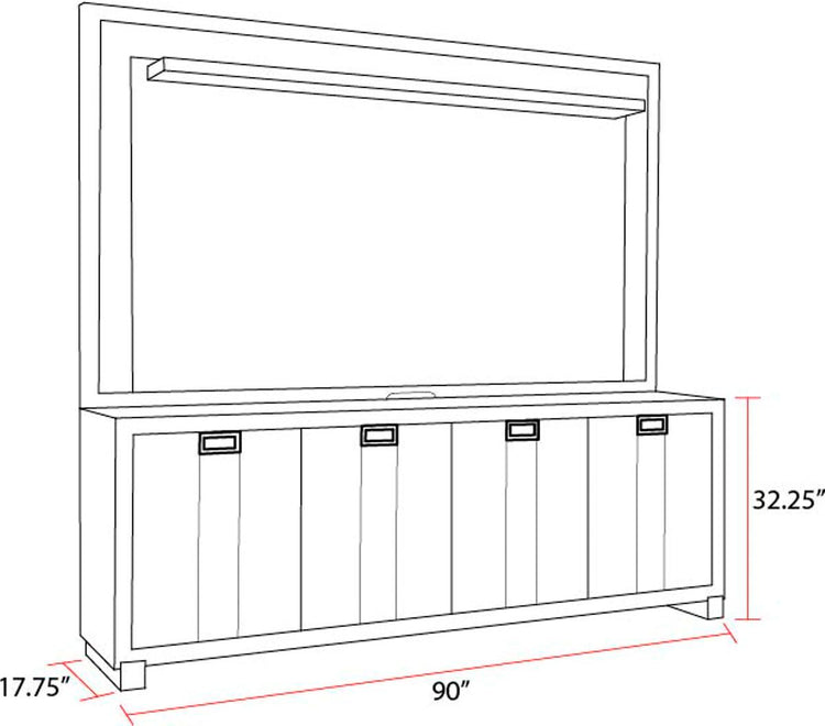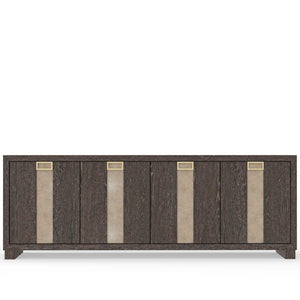 Stow away items in style with the Ascent Convenient 90" Console. Ascent features interior console storage is complete with adjustable shelving and a hidden drawer. Contrasting shagreen textured panels are set against beautiful dark chocolate oak veneers, creating a modern classic aesthetic that will never go out of style.