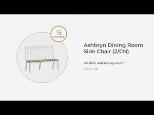 Casual style with substance. This double dining chair's two-tone finish of classic white and butcher block oak veneer adds a relaxed vibe to a delicious design. The curved shape of its bent slat-back frame offers a sense of modern farmhouse style, while the contoured seat adds comfort. Sit back and cozy up in charmingly fine fashion in your informal dining room or eat-in kitchen.