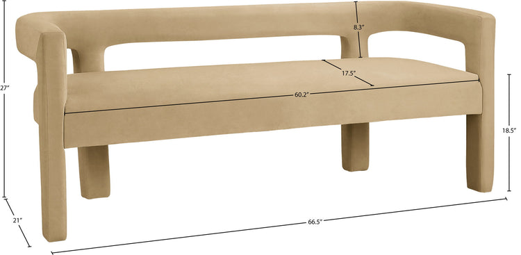 Flaunt your modish tastes with this Athena velvet bench. Sophisticated by design, this dining room seating offers a sturdy frame made from high-quality materials and upholstered in soft welcoming velvet, so it always feels comfortable for family and guests. A low back provides a clean aesthetic while offering support as you wine and dine the night away. Pair it with other items in the same collection for a cohesive look.