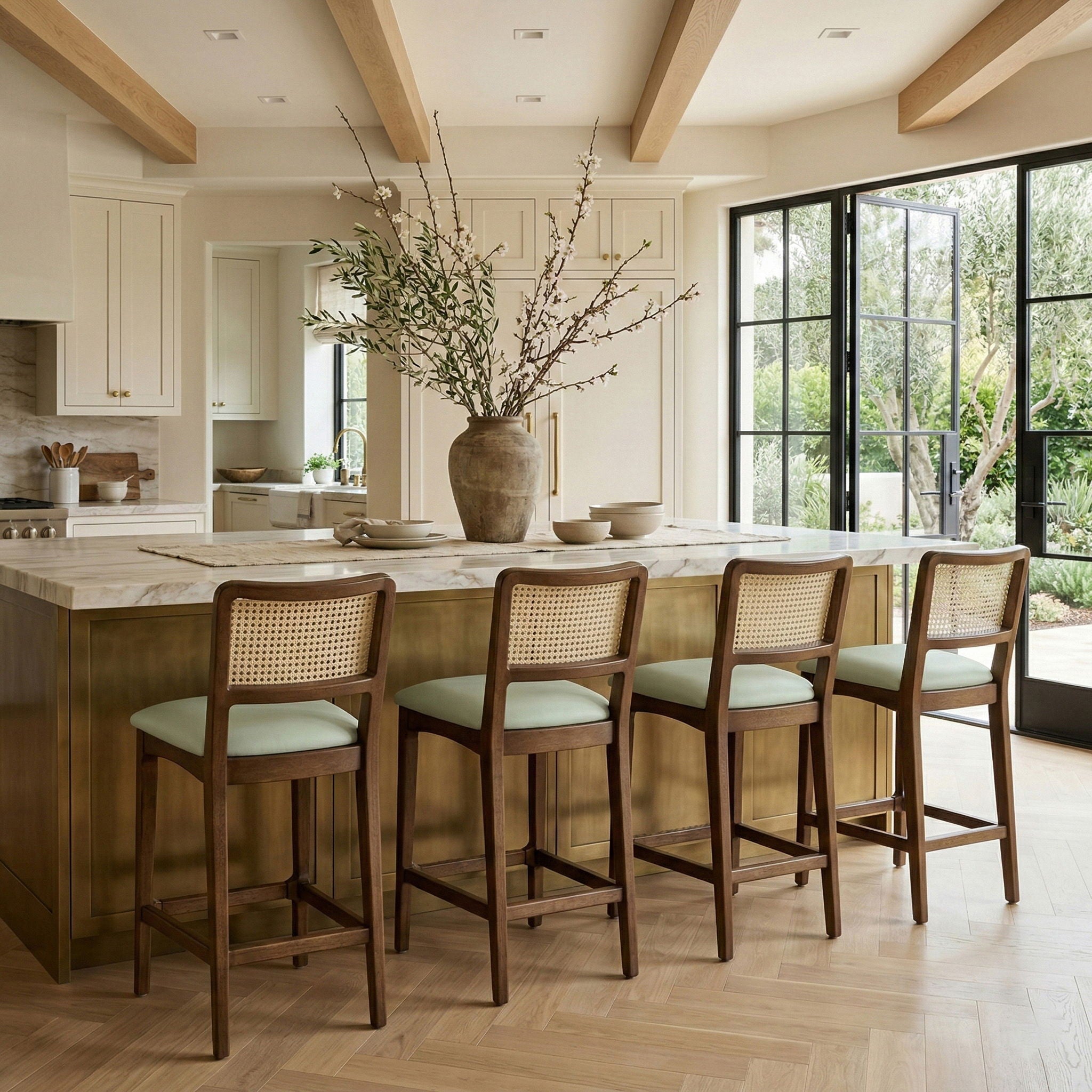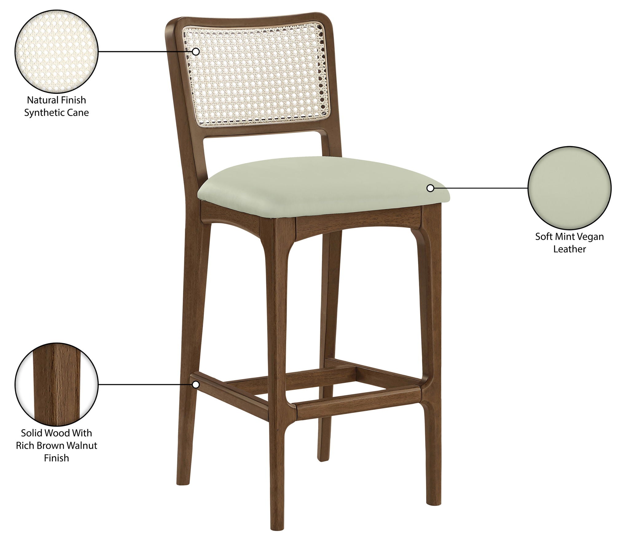 Atrium - Cane Back And Vegan Leather Upholstered Bar Stool (Set of 2) - Mint