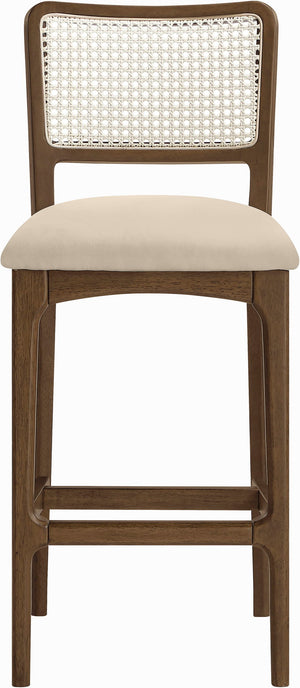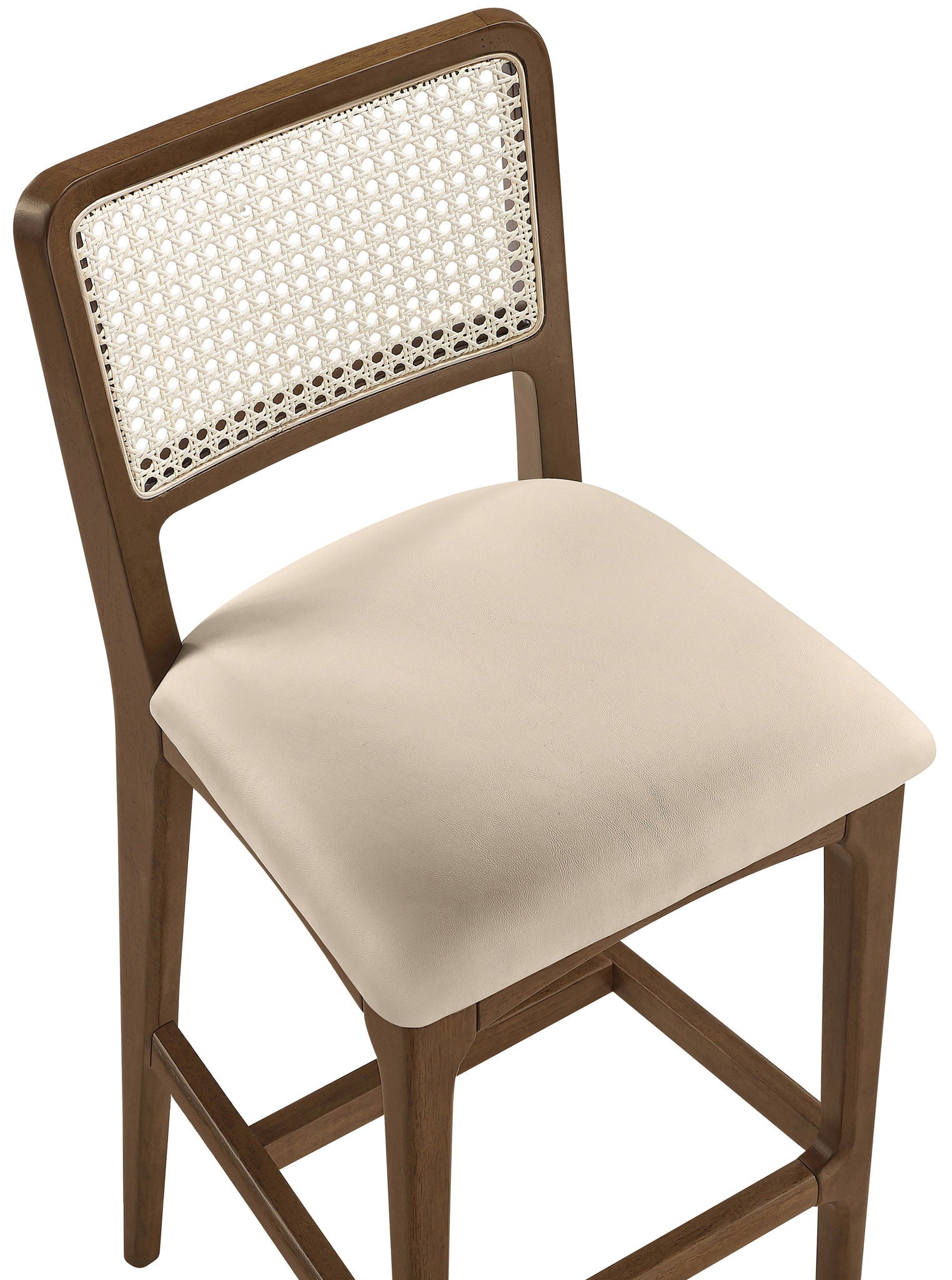 Atrium - Cane Back And Vegan Leather Upholstered Bar Stool (Set of 2) - Cream / Brushed Brown