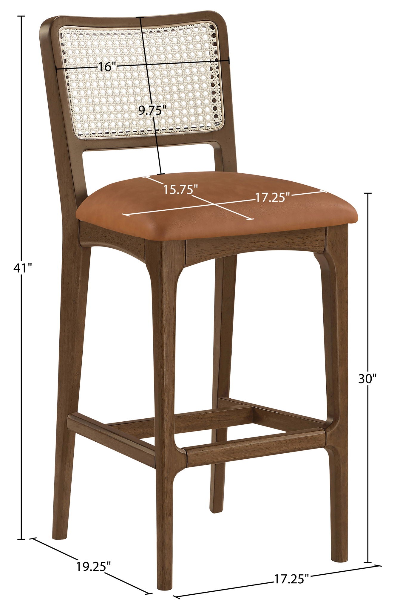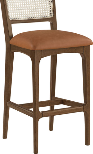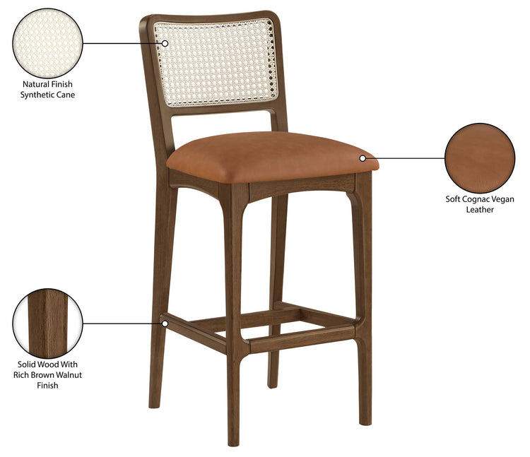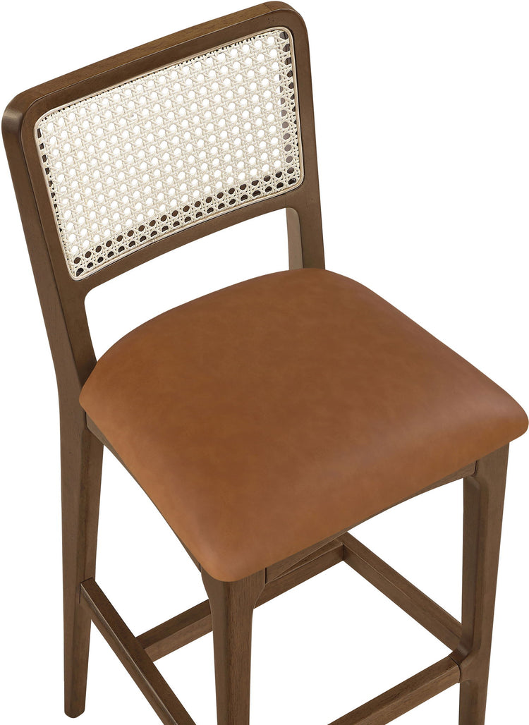 Atrium - Cane Back And Vegan Leather Upholstered Bar Stool (Set of 2) - Cognac / Brushed Brown