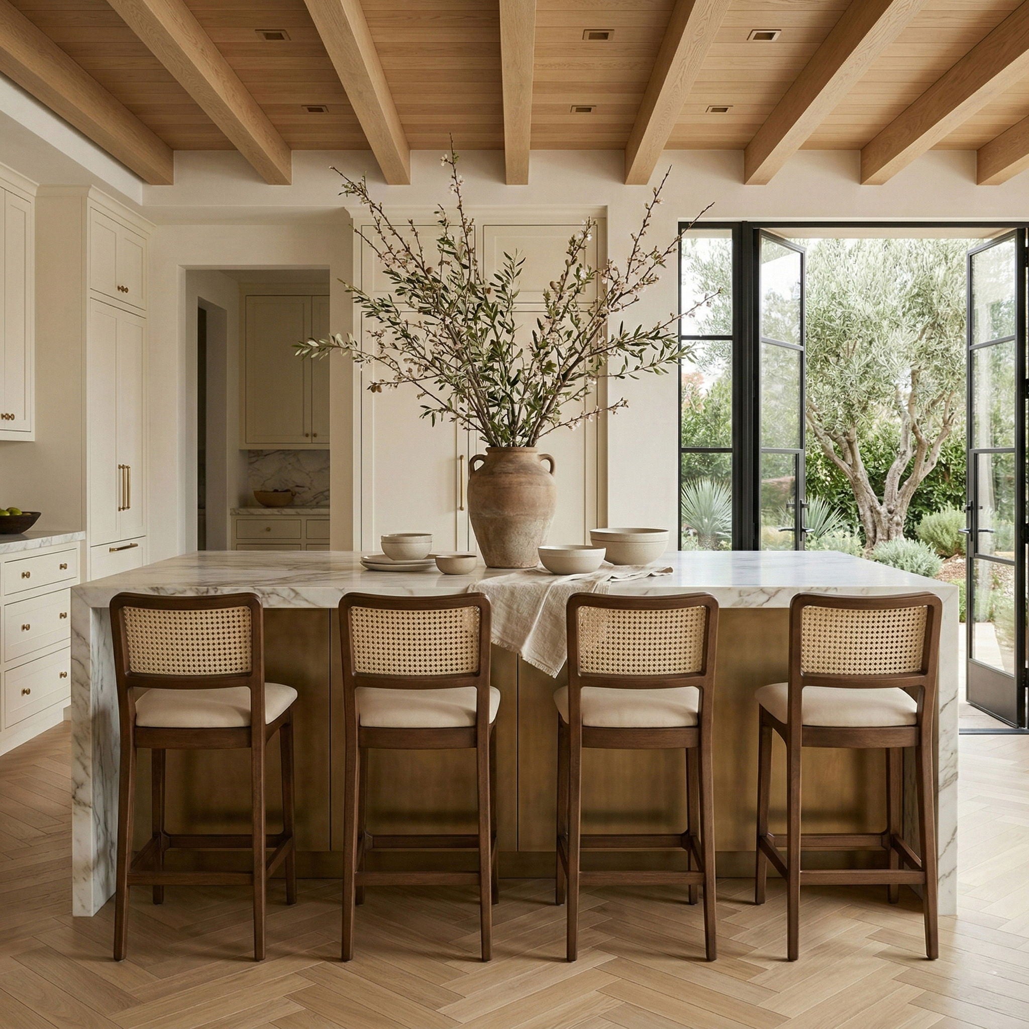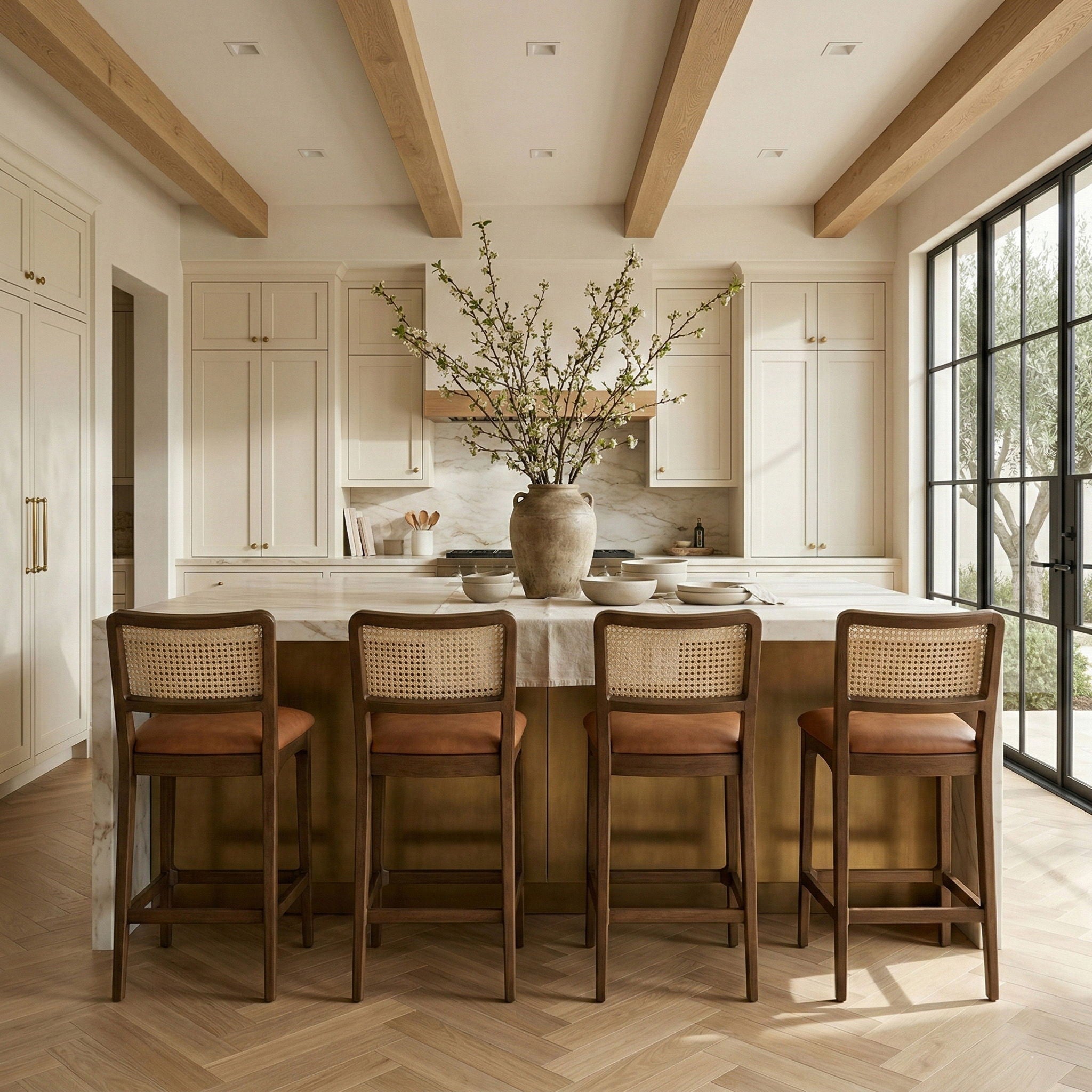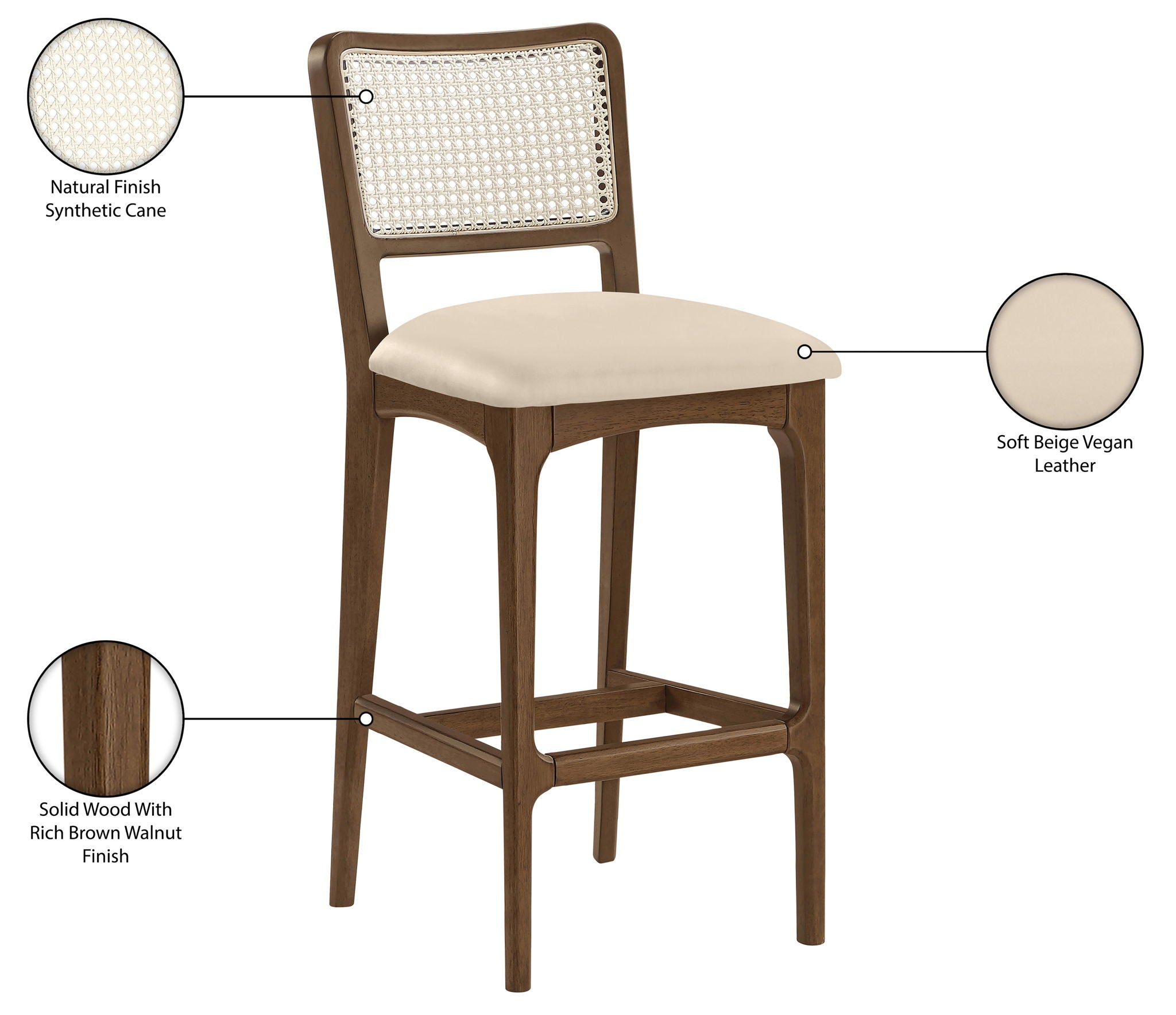 Atrium - Cane Back And Vegan Leather Upholstered Bar Stool (Set of 2) - Beige