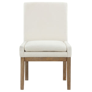 The Aubrey Parsons Chair: offers an elegant addition to the Aubrey collection that effortlessly elevates any room's ambiance. Crafted with an eggshell cover made from 100% polyester, this chair offers a perfect blend of comfort and style.