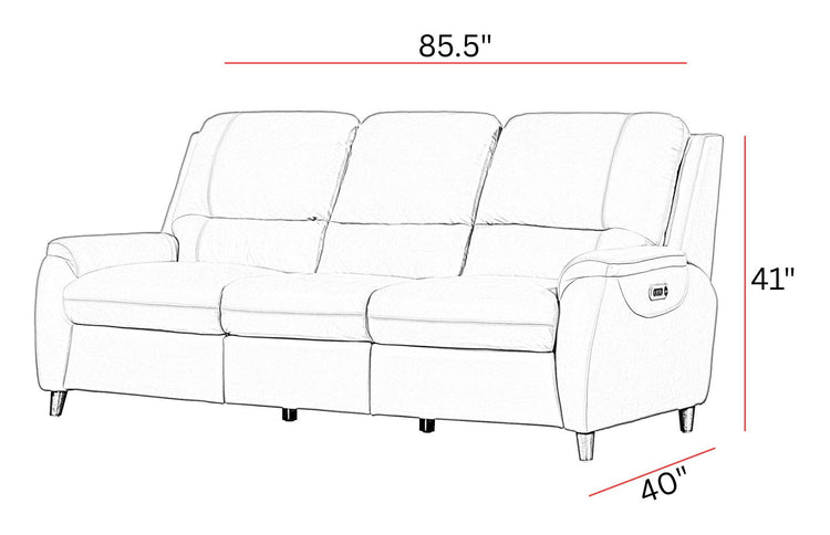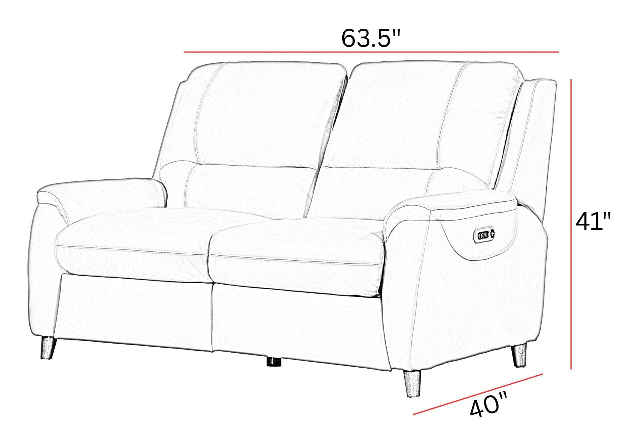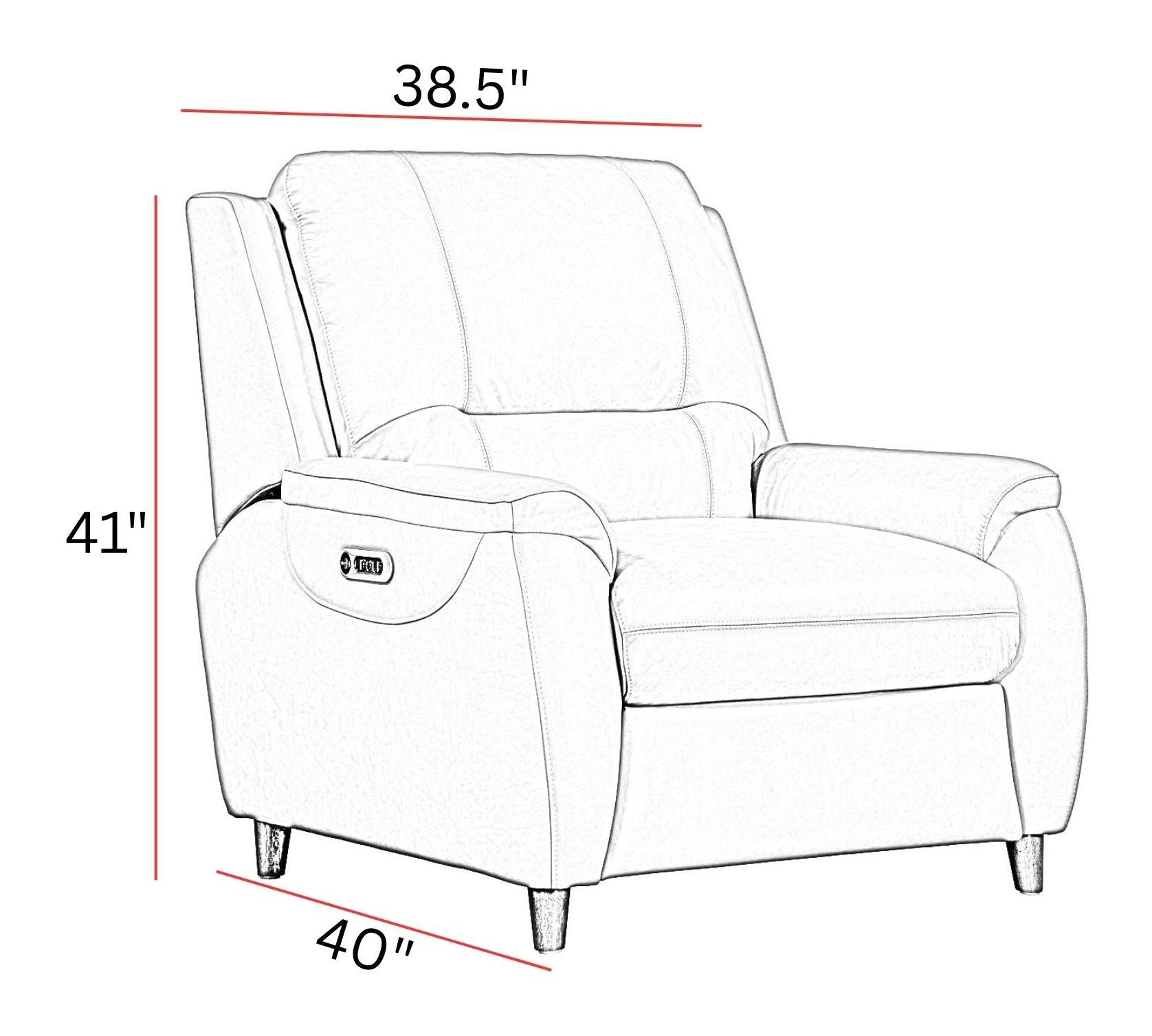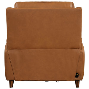 The Austin power reclining group is designed for ultimate comfort and convenience. It features independently operating power headrests and is upholstered in supple leather with a custom match. The modern high-leg design in a warm finish gives it a contemporary look. The power recline switch includes USB and USB-C ports, as well as a "home" button to bring all positions back to an upright position. It is also ready to mount any FreeMotion® bracket and battery for cordless operation easily.