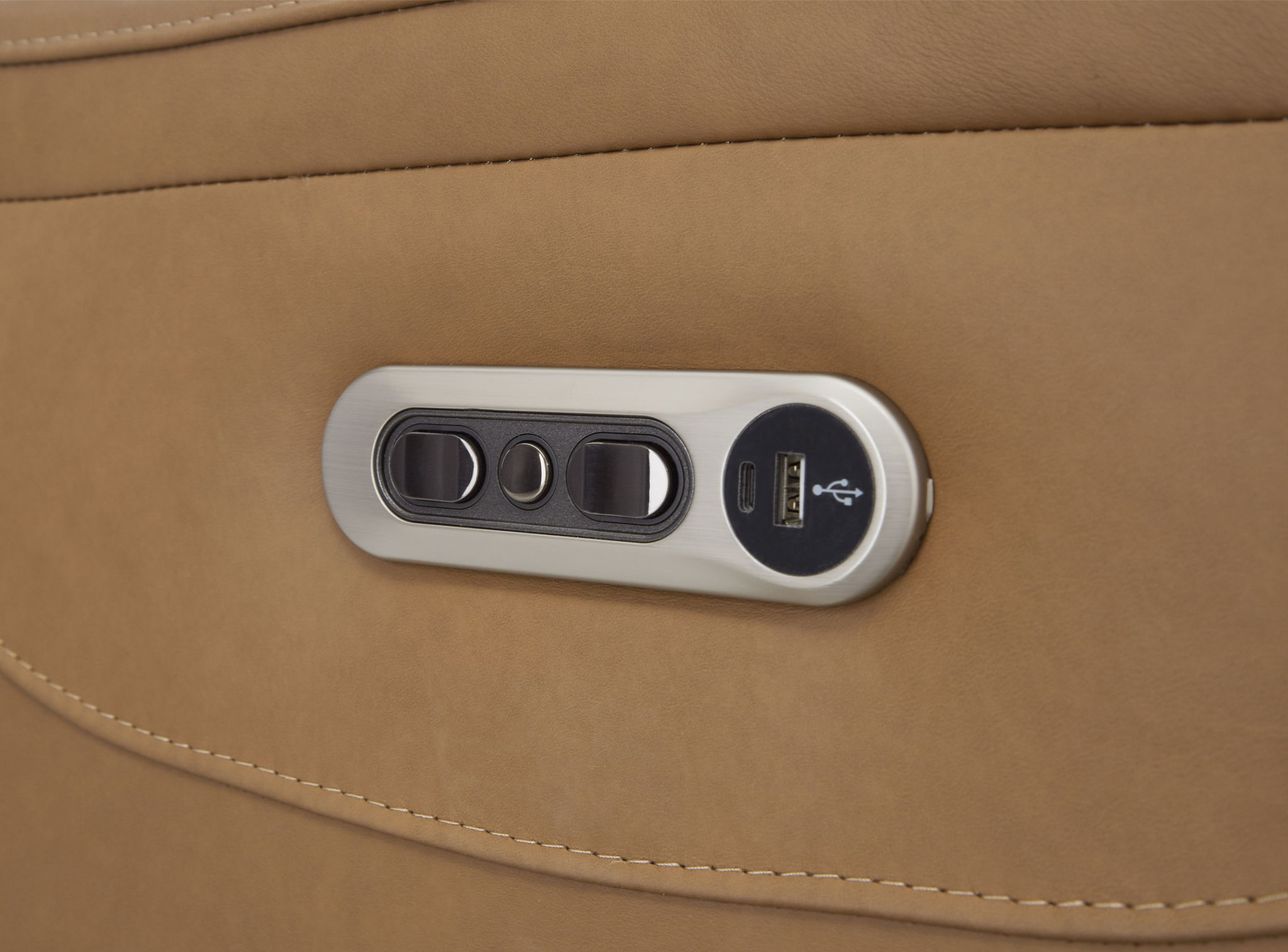 - Power recline switch includes a USB and USB-C ports, and a “Home” button to bring all positions back to upright