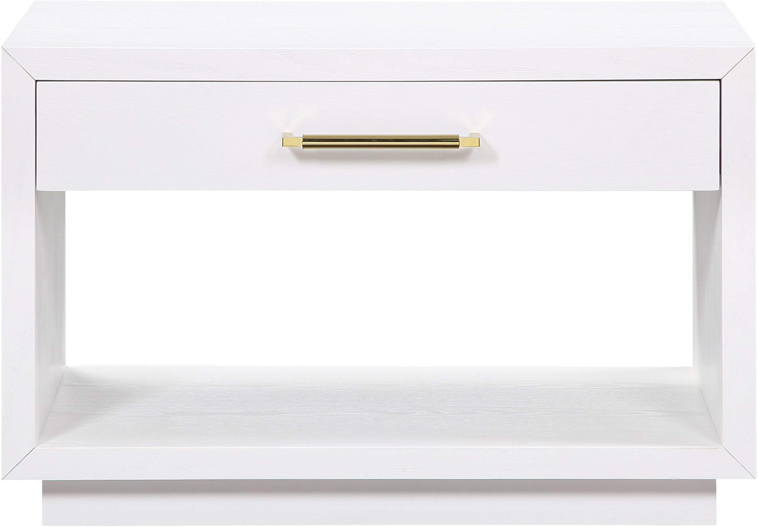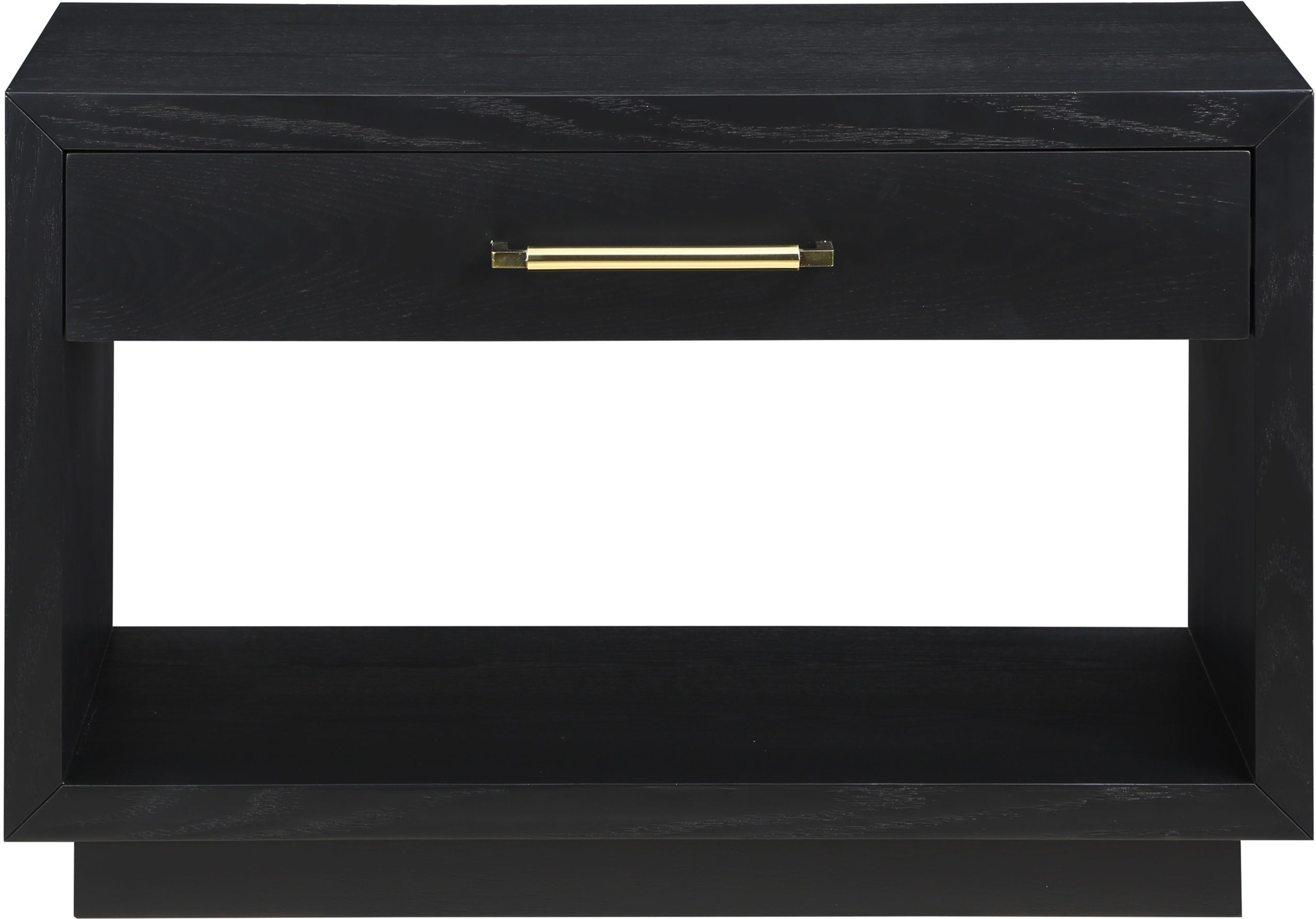 Give your room a makeover with this Avery wood veneer night stand from Meridian Furniture. This open-spaced, rectangular night stand features rich ash wood veneer finish, ensuring it complements your existing bedroom decor. A small drawer in the front provides you with extra space to store reading glasses, nighttime reading material, and more.