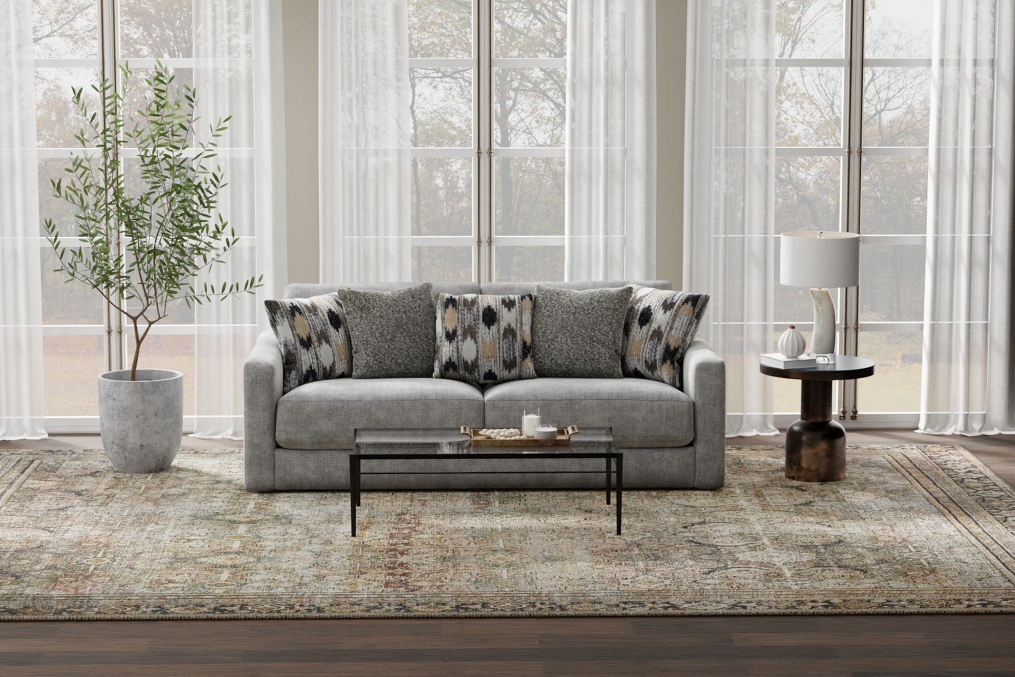 Avondale features the ultimate comfort of our Cuddler Cushion. Accented with an eclectic mix of toss pillows in a variety of colors and textures.