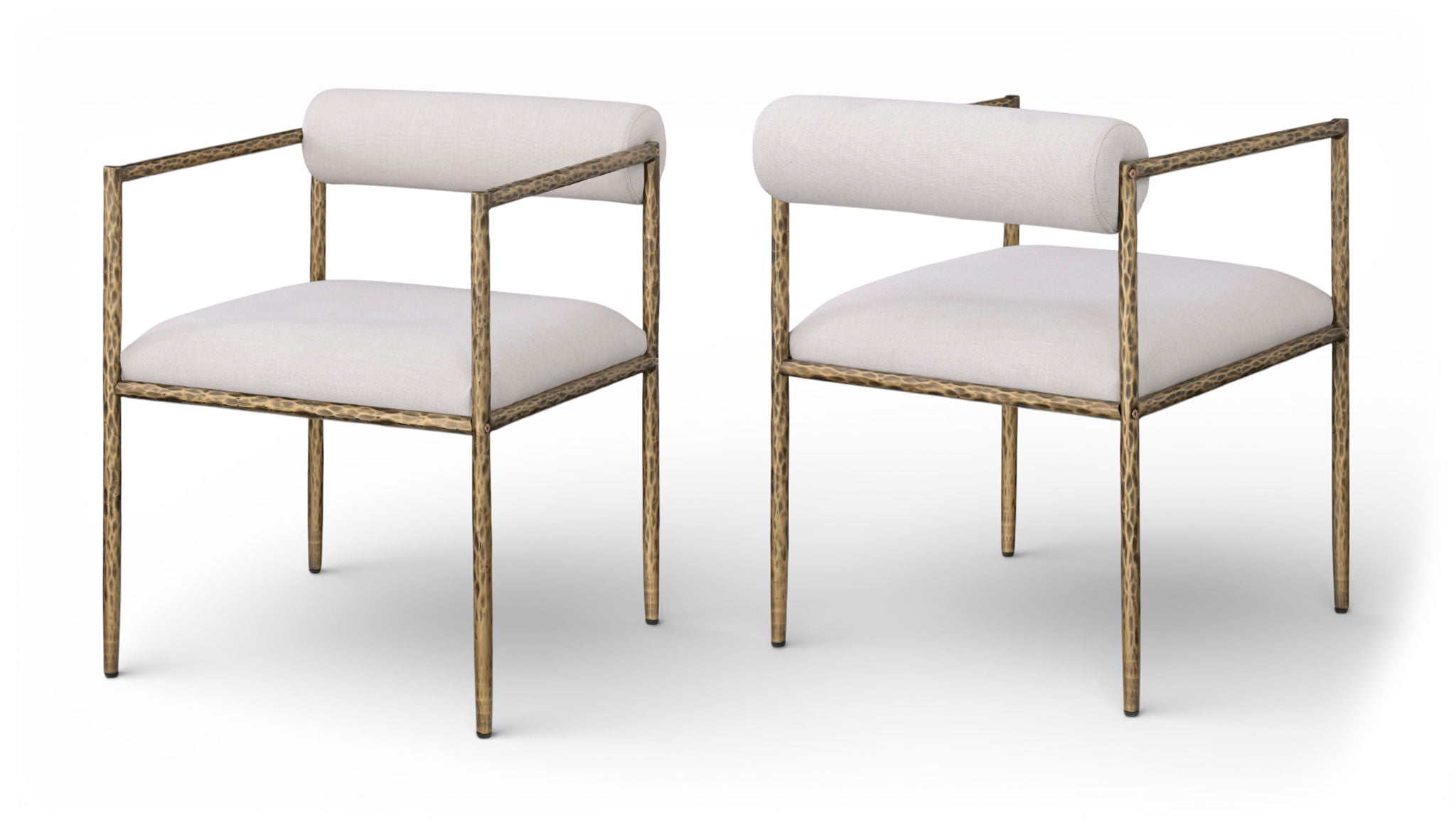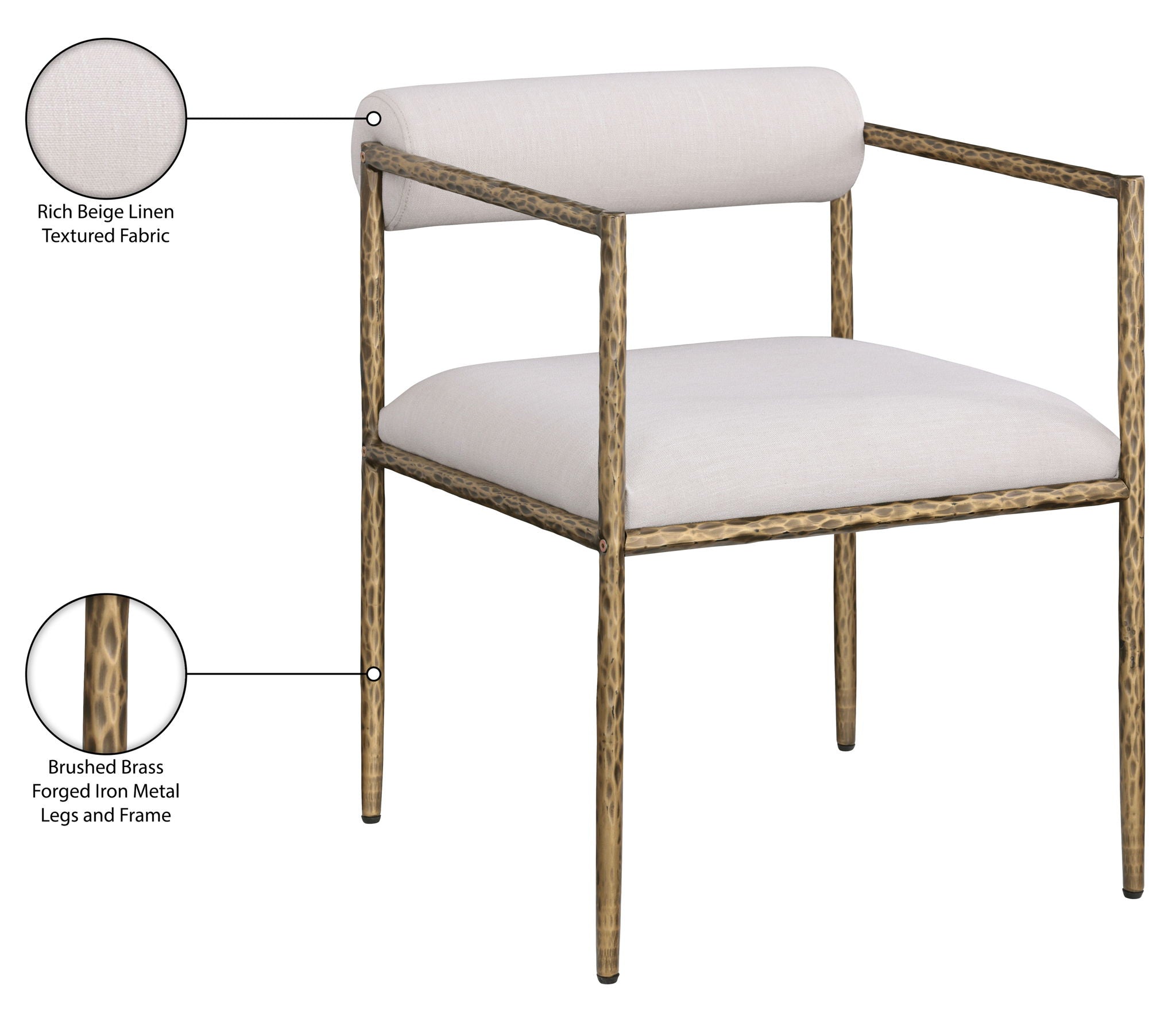 Axis - Linen Textured Fabric Upholstered Dining Chair (Set of 2) - Beige / Powder Coated Brushed Brass
