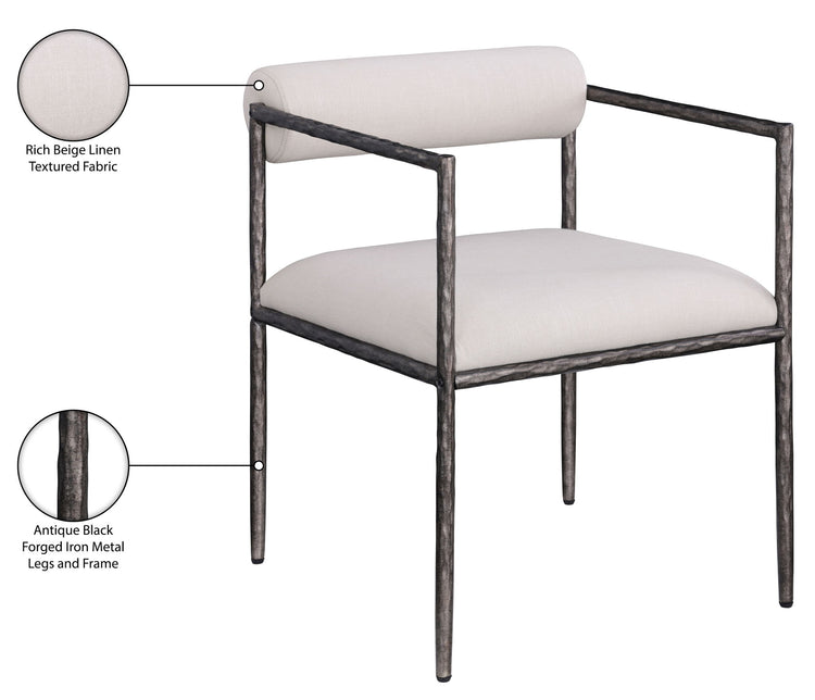 Axis - Linen Textured Fabric Upholstered Dining Chair (Set of 2) - Beige / Powder Coated Antique Black