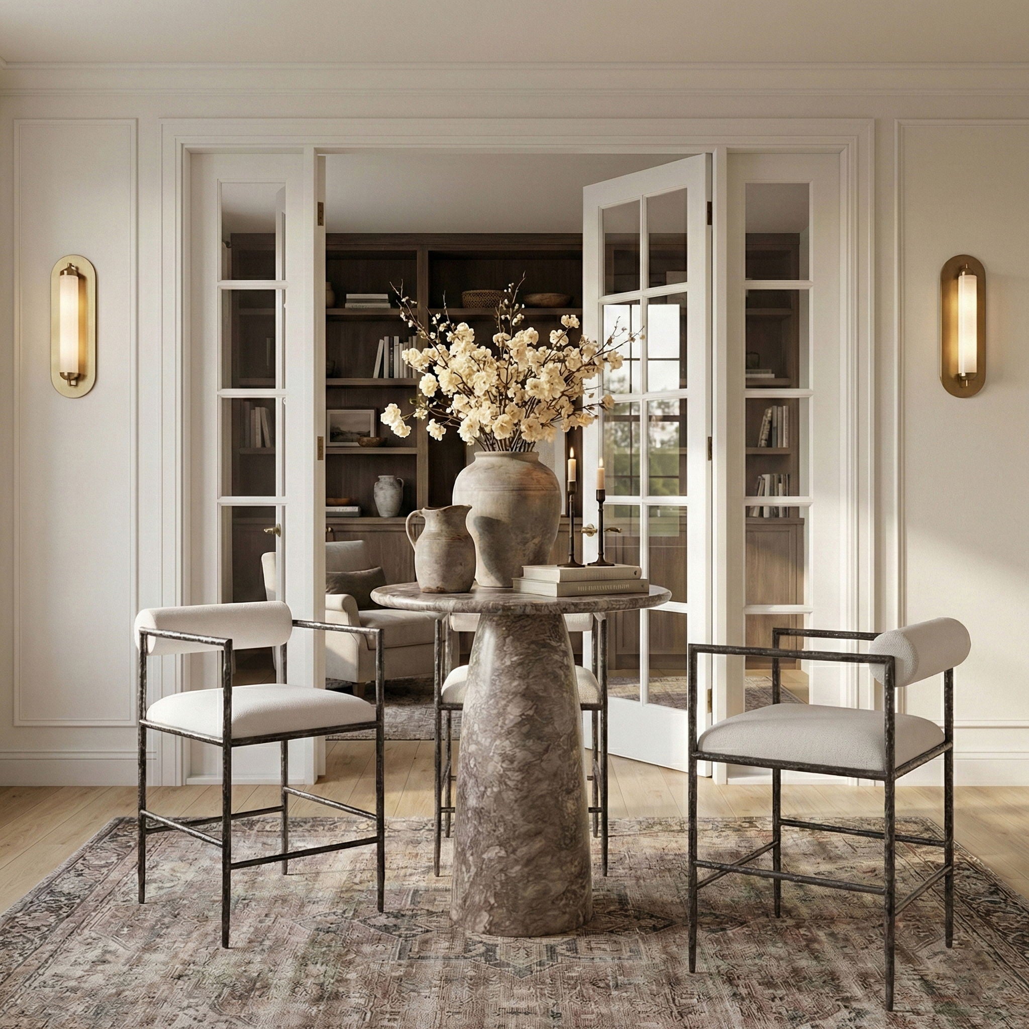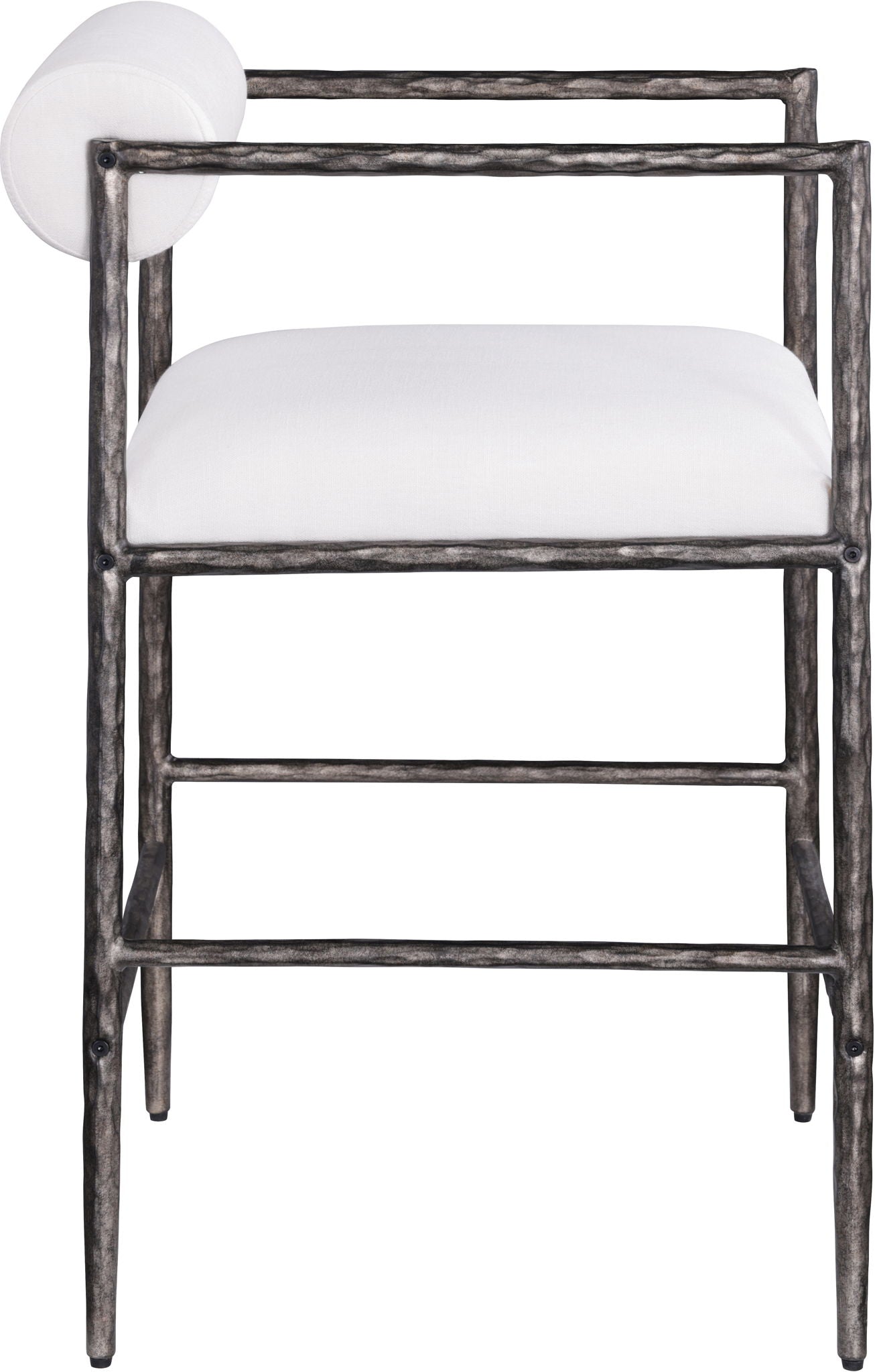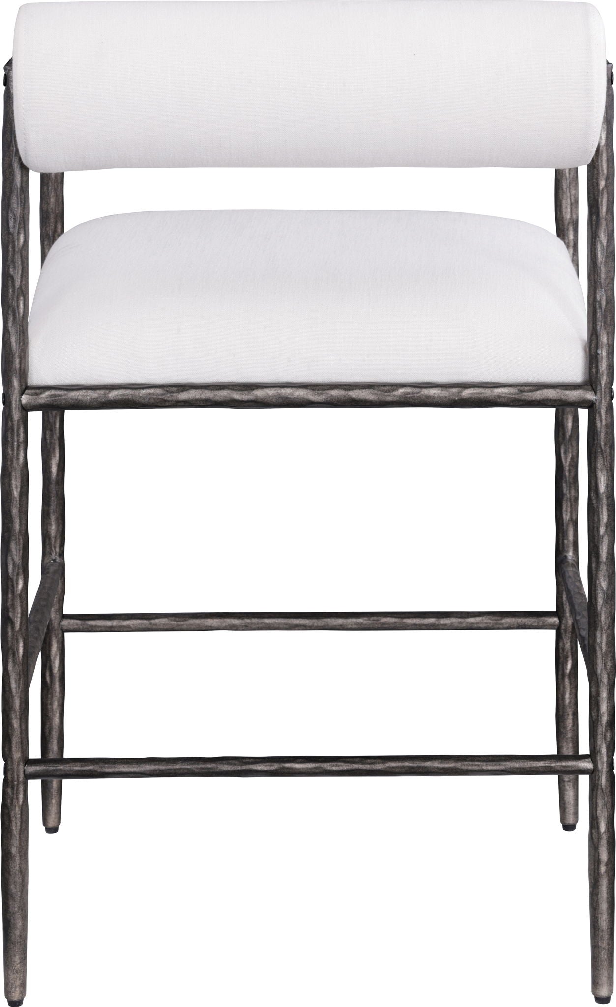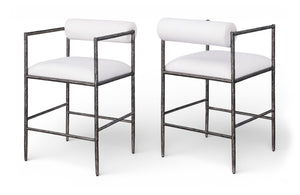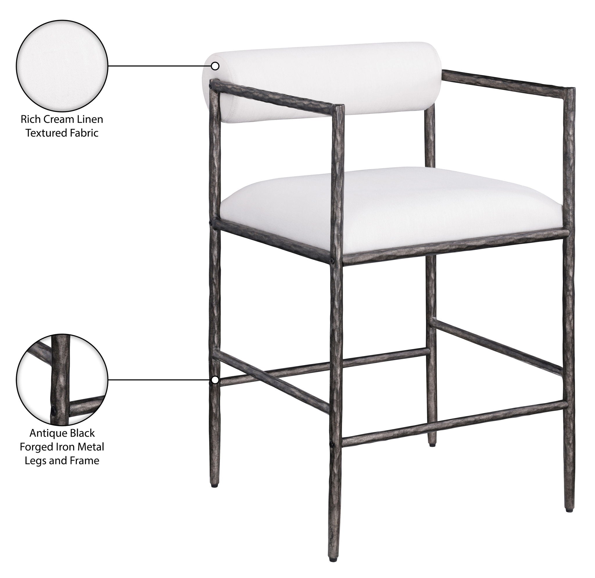 Axis - Linen Textured Fabric Upholstered Counter Stool (Set of 2) - Cream / Powder Coated Antique Black