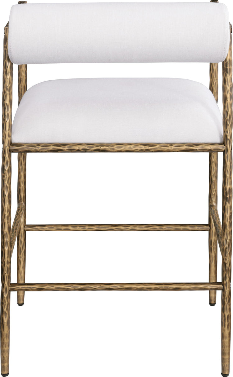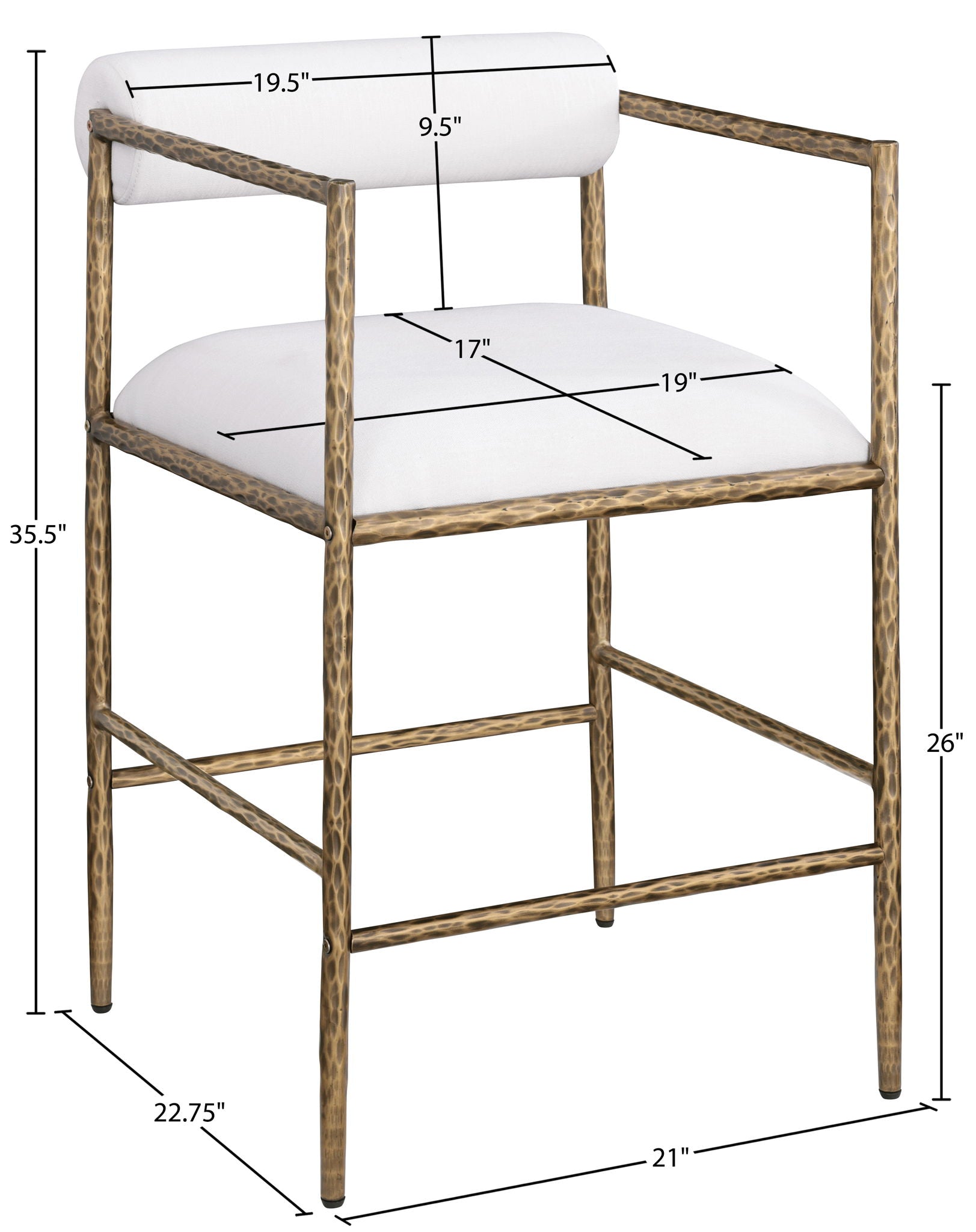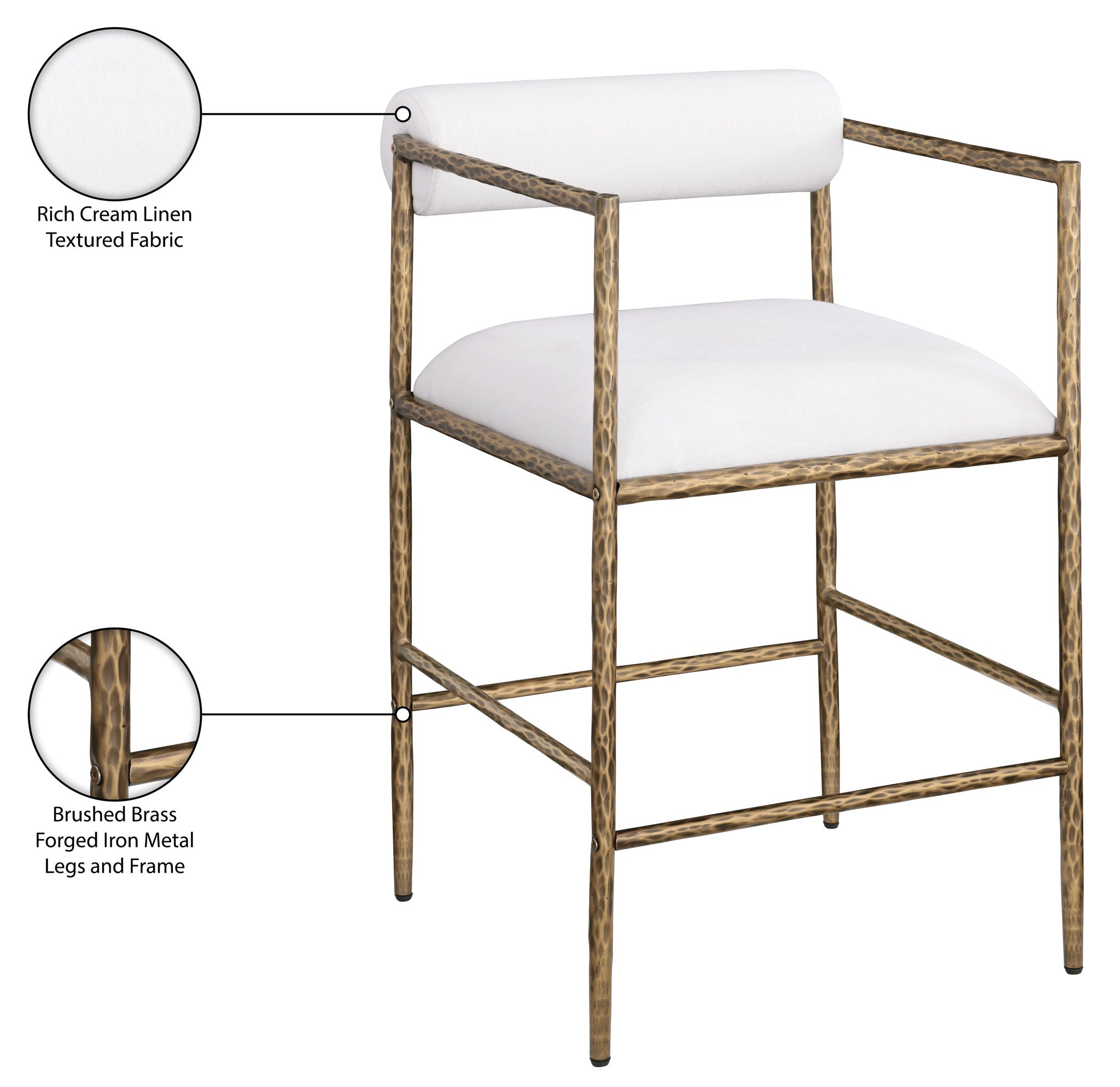 Axis - Linen Textured Fabric Upholstered Counter Stool (Set of 2) - Cream / Powder Coated Brushed Brass