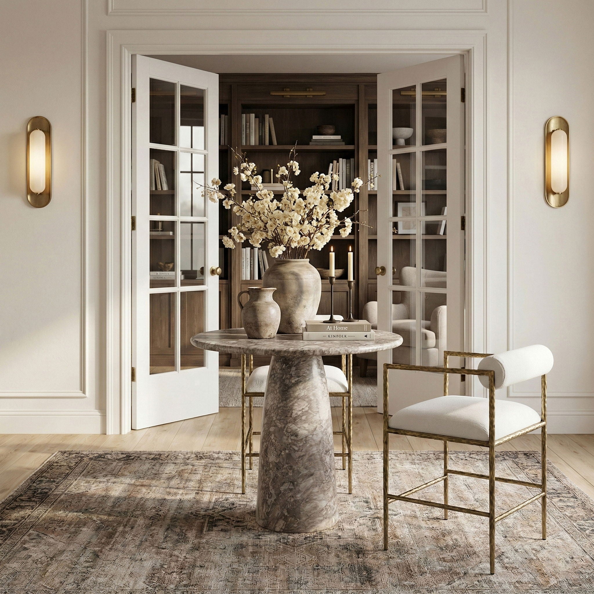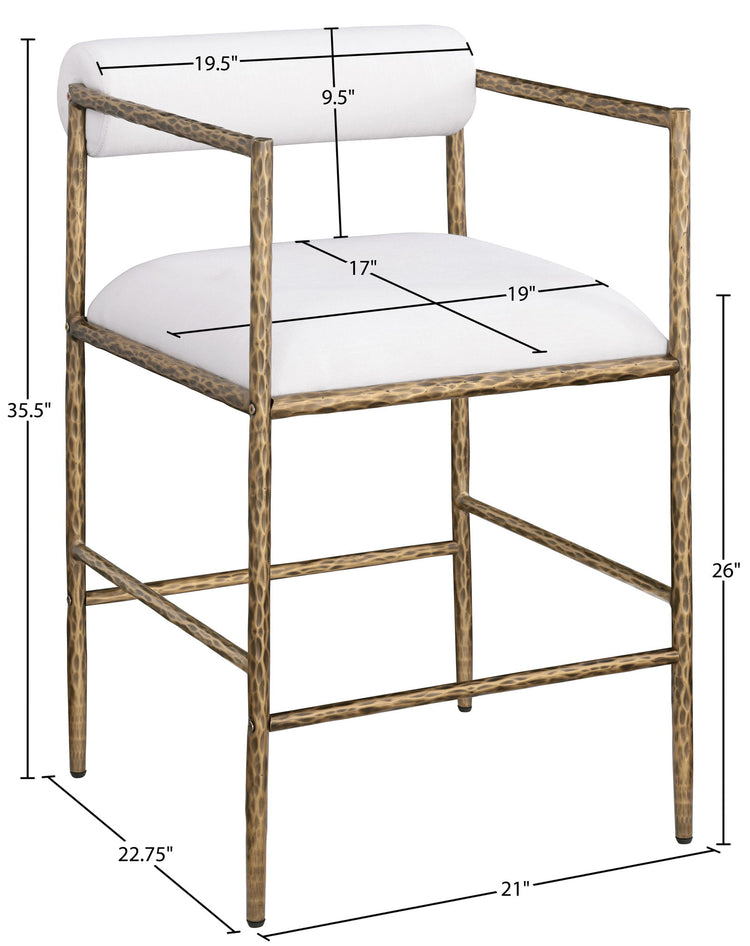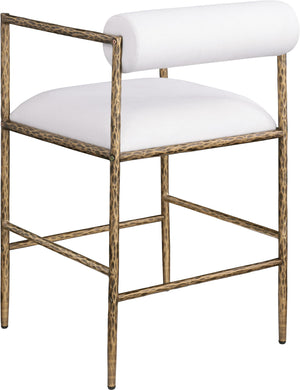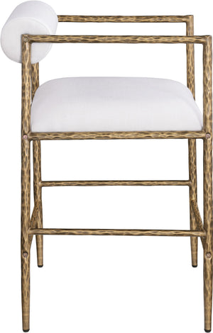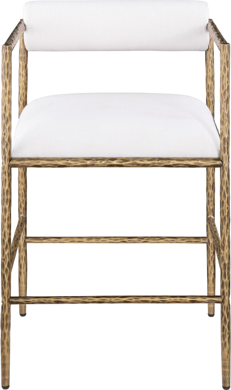 Axis - Linen Textured Fabric Upholstered Counter Stool (Set of 2) - Cream / Powder Coated Brushed Brass