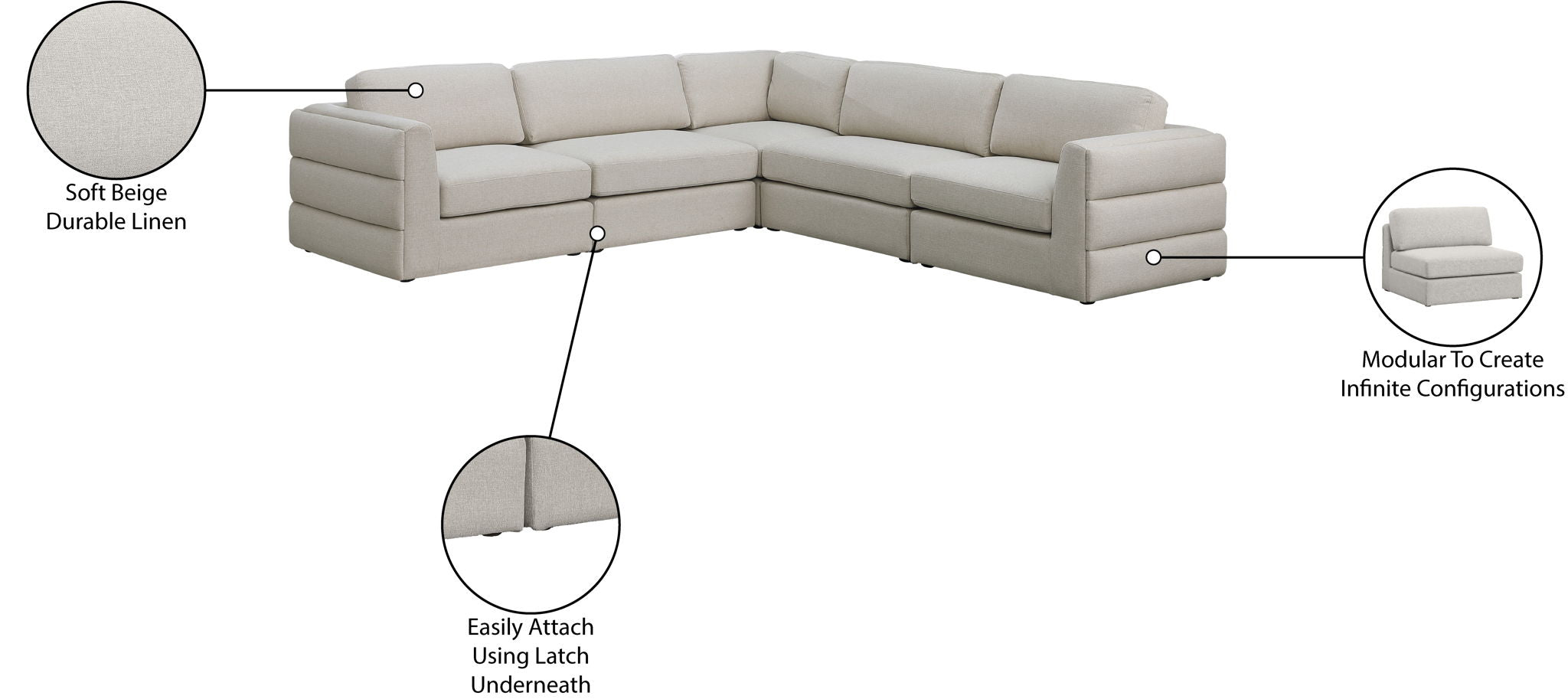 Beckham - 5 Piece Modular Corner Sectional - Beige