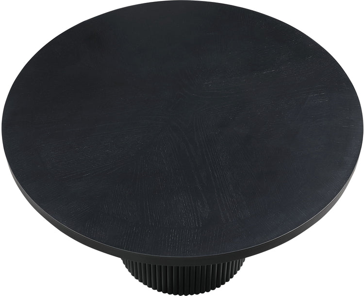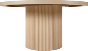Even the smallest, most intimate dinner feels like an event when you're seated at this Belinda dining table. Crafted with a solid wood base and a finish oak wood veneer MDF top, its round top with fluted base exudes contemporary charm. The table top's thickness and natural wood grain variations add unique character, ensuring each piece is one-of-a-kind.