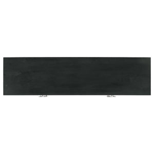 Asian inspiration creates the decadence you seek in outfitting a dining room or living space. This accent cabinet reflects a level of minimalism dressed up with gorgeous finishes to create an exotic ambiance with plenty of function. Rich walnut finish mango wood front panels and a black case offer a mix of smooth and textured effects, as a bracket-style iron frame and matching door hardware create a compelling palette. Find space on two fixed interior shelves behind each set of doors to store dishes, serve ware, or anything that needs to be tucked away. Smooth drawer closure is possible thanks to magnetic closures.