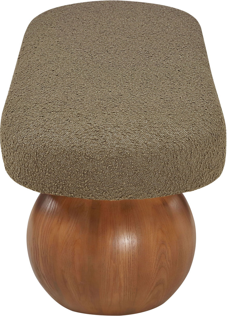 Elevate your home decor with this stunning Bowie Boucle Fabric Bench. The rich boucle fabric gives it a luxurious and sophisticated look that is sure to catch the eye of guests. The walnut finish on the solid ash wood ball-shaped legs adds a touch of charm and elegance to the piece. Whether you're using it as a stylish seating option in your living room or as a chic accent piece in your bedroom, this bench is sure to impress.