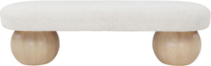 Elevate your home decor with this stunning Bowie Boucle Fabric Bench. The rich boucle fabric gives it a luxurious and sophisticated look that is sure to catch the eye of guests. The natural finish on the solid ash wood ball-shaped legs adds a touch of warmth and elegance to the piece. Whether you're using it as a stylish seating option in your living room or as a chic accent piece in your bedroom, this bench is sure to impress.