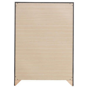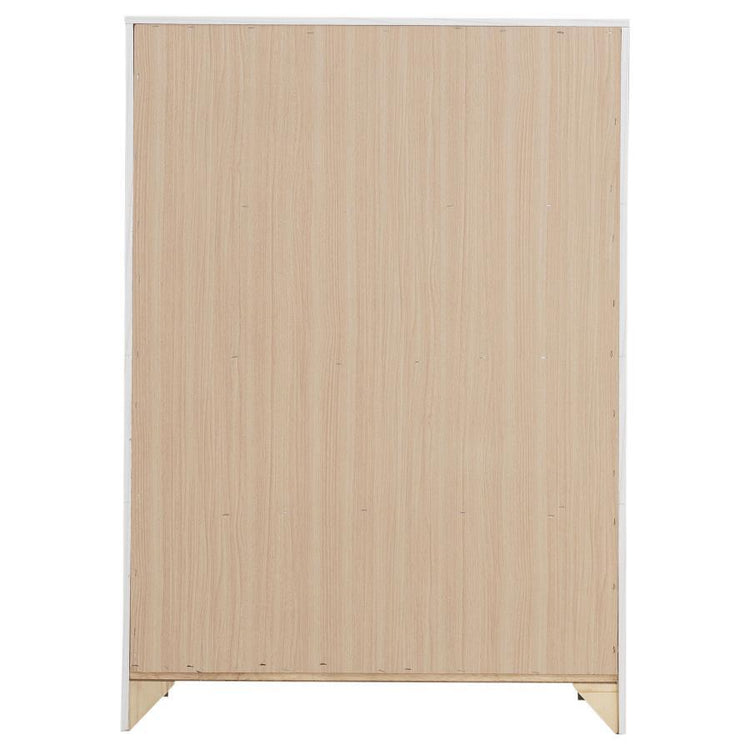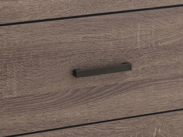 Give your bedroom a clean, classic look. This beautiful, wooden chest of drawers showcases crisp, clean lines and bronze hardware for a no-nonsense look. The five spacious drawers provide plenty of room to accommodate an extensive wardrobe. A 3D paper veneer is specially crafted for easy cleaning and maintenance. This piece is available in multiple finishes, giving you a variety of options to enhance your decor.