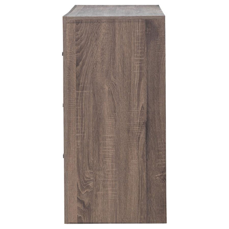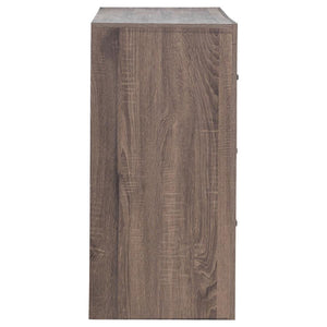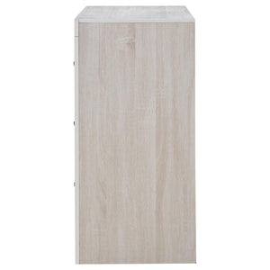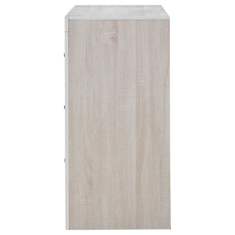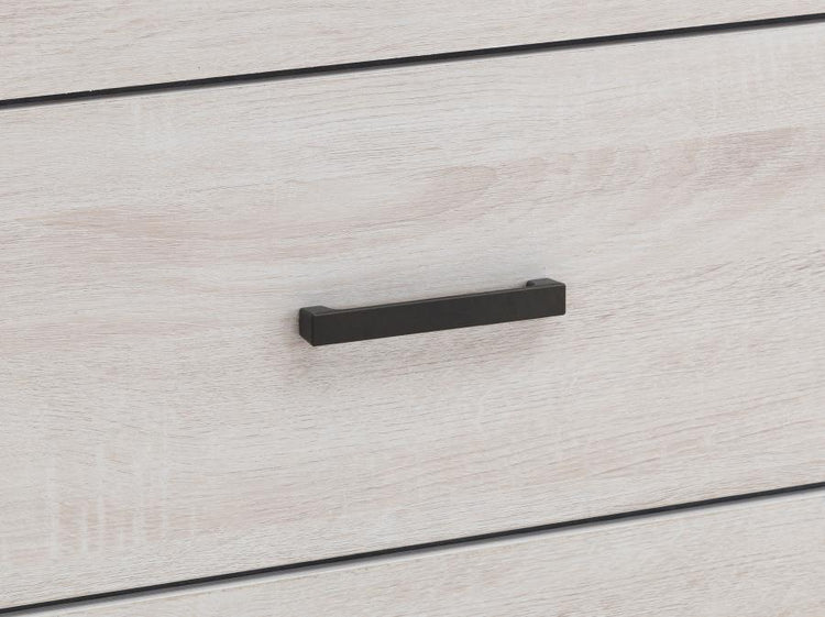 Bold and contemporary, this wooden dresser freshens up a bedroom with cool, modern appeal. This piece is crafted with a 3D paper veneer for added quality and easy maintenance. Dark handles top each drawer to add a classic element to its modern look. The deep storage drawers easily accommodate a wide variety of wardrobe essentials. This beautiful dresser is available in multiple finishes to easily blend with any palette.