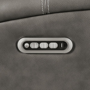 This triple power recliner chair invites you to unwind with motion, support, and quiet luxury. Wrapped in soft leatherette upholstery, it offers a supple touch that enhances every moment of rest. A gliding and swivel base flows effortlessly while plush cushions and contouring lumbar support cradle the body. Power headrest, lumbar, and recline functions adjust at your command. Hidden cup holders and built-in USB A and USB C ports add thoughtful convenience, while an emergency power-down port offers peace of mind.