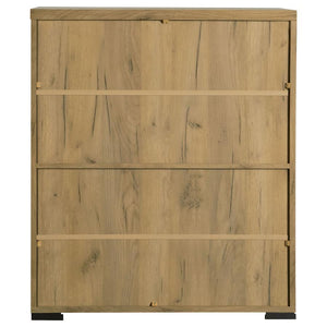 This shoe cabinet blends functional storage with a warm, rustic aesthetic. Crafted from engineered wood with a golden oak wood-look laminate veneer, it offers a natural texture that complements a variety of interiors. The double doors feature mesh-style inserts and modern black handles for a subtle industrial accent. Inside, seven shelves provide generous room for organizing shoes, making this piece ideal for keeping entryways or closets neat and accessible.