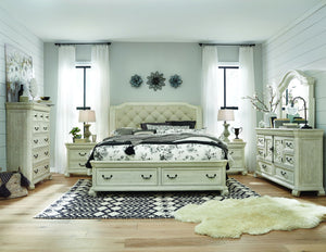 Dream big with the stylish Bronwyn bedroom collection. Its signature style is perfect for adding that wow factor to a bedroom. Crafted in an Alabaster finish accented by Antique Brass hardware with Pewter overlay and Bronwyn delivers true design versatility and can be paired with neutrals or bold color choices. Gorgeously interesting from every angle and it offers a look that’s timeless yet sophisticated. If your bedroom isn't your favorite room in your home and it’s time to add the rich design character of Bronwyn.