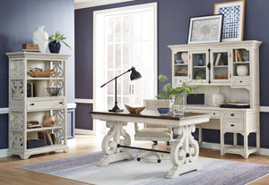 Dream big with the stylish Bronwyn home office collection. Its signature style is perfect style is perfect for adding that wow factor to a home office. Crafted in an Alabaster finish and select pieces are available in a two toned Alabaster and Toasted Nutmeg finish. Accented by Antique Brass hardware with Pewter overlay and Bronwyn delivers true design versatility and can be paired with neutrals and bold color choices. Gorgeously interesting from every angle and it offers a look that is timeless yet sophisticated.
