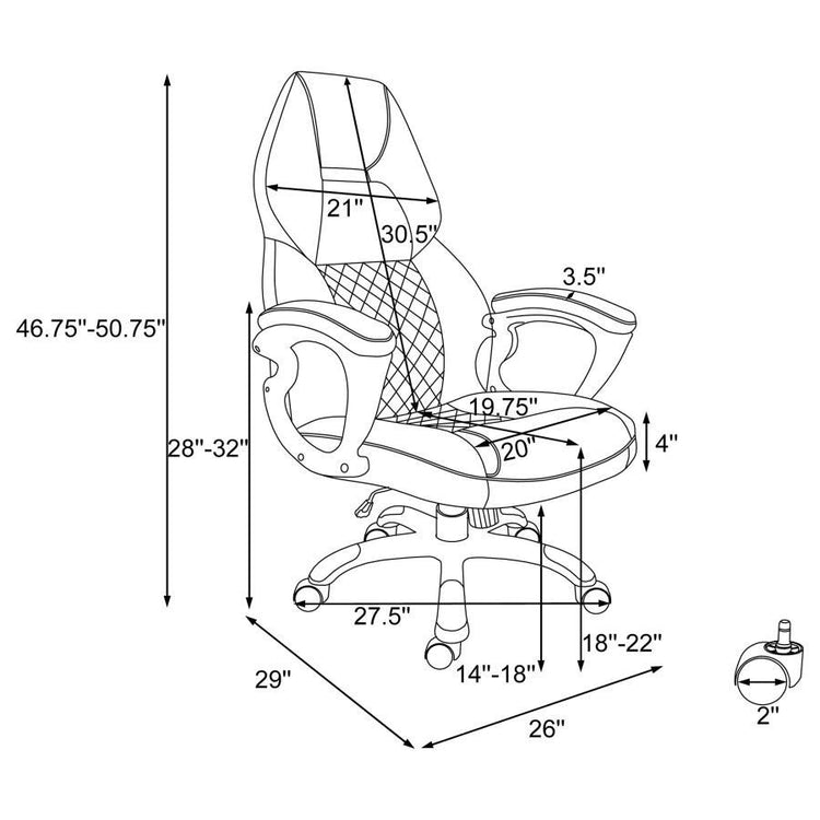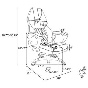 A modern office enjoys a light, airy uplift with this office chair. Contemporary design elements fashion a sleek, sophisticated look. It offers easy care and an energetic attitude. Enjoy ergonomic comfort with a large headrest, contoured back, arm rests, and a slender molded seat. Adjustable height settings provide tailored positions, and a caster wheel base ensures smooth portability.