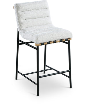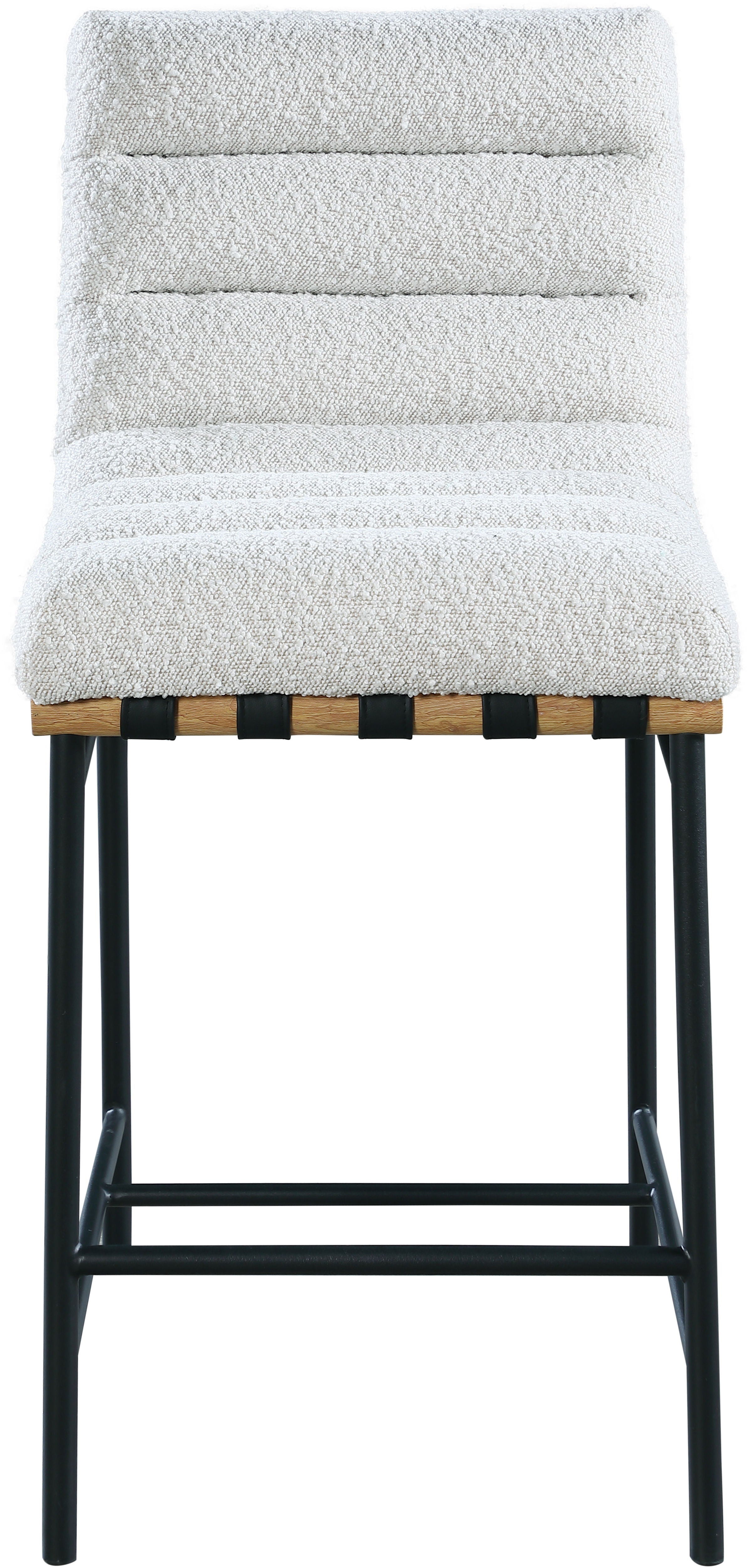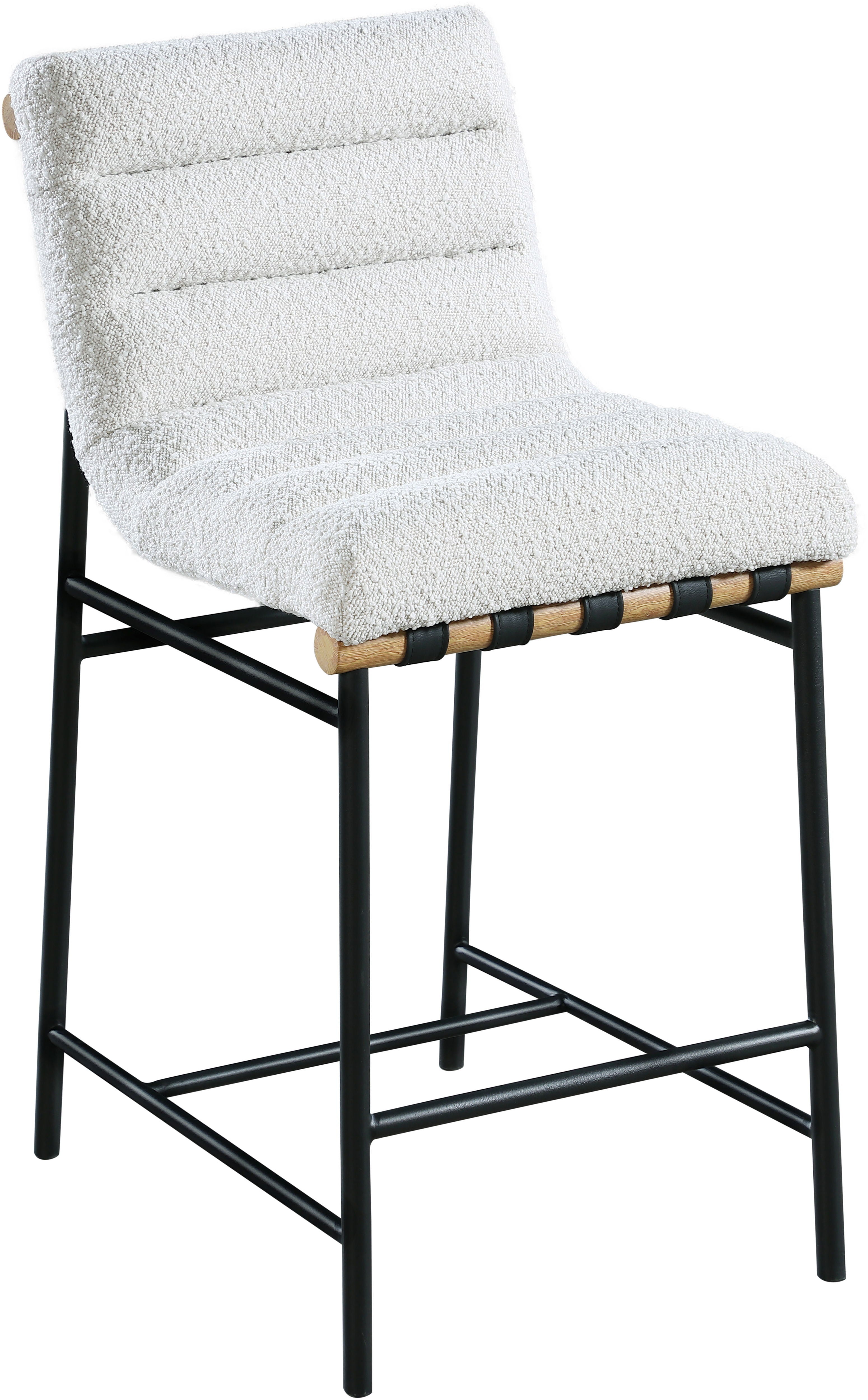 Kick back and relax with a drink in your hand with this Burke black faux leather counter stool. Featuring soft faux leather upholstery and faux leather straps, this counter stool is cozy and stylish. Its matte metal frame provides sturdy support so you can enjoy this stool for years to come. A white oak veneer metal dowel is tucked firmly in place beneath the front of the stool, providing extra support and added style.